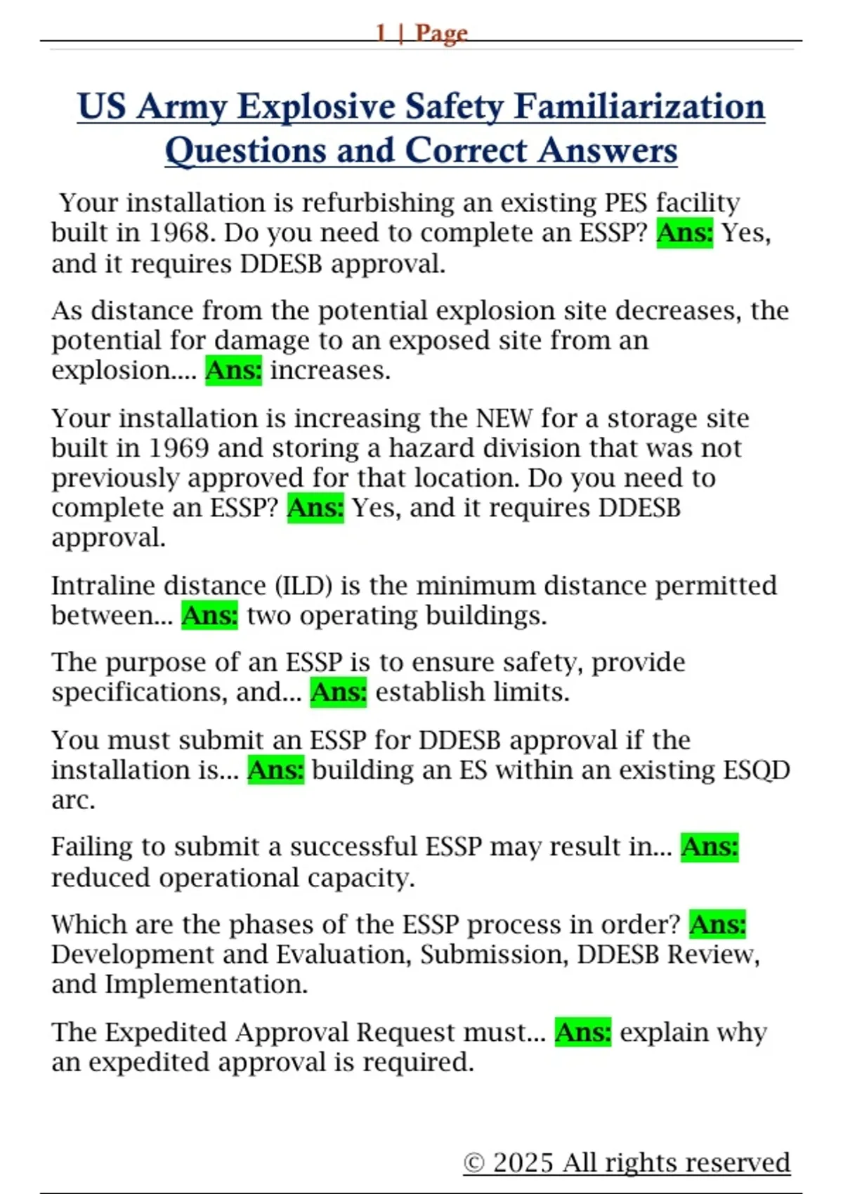 complete an ESSP? Ans: Yes, and it requires DDESB