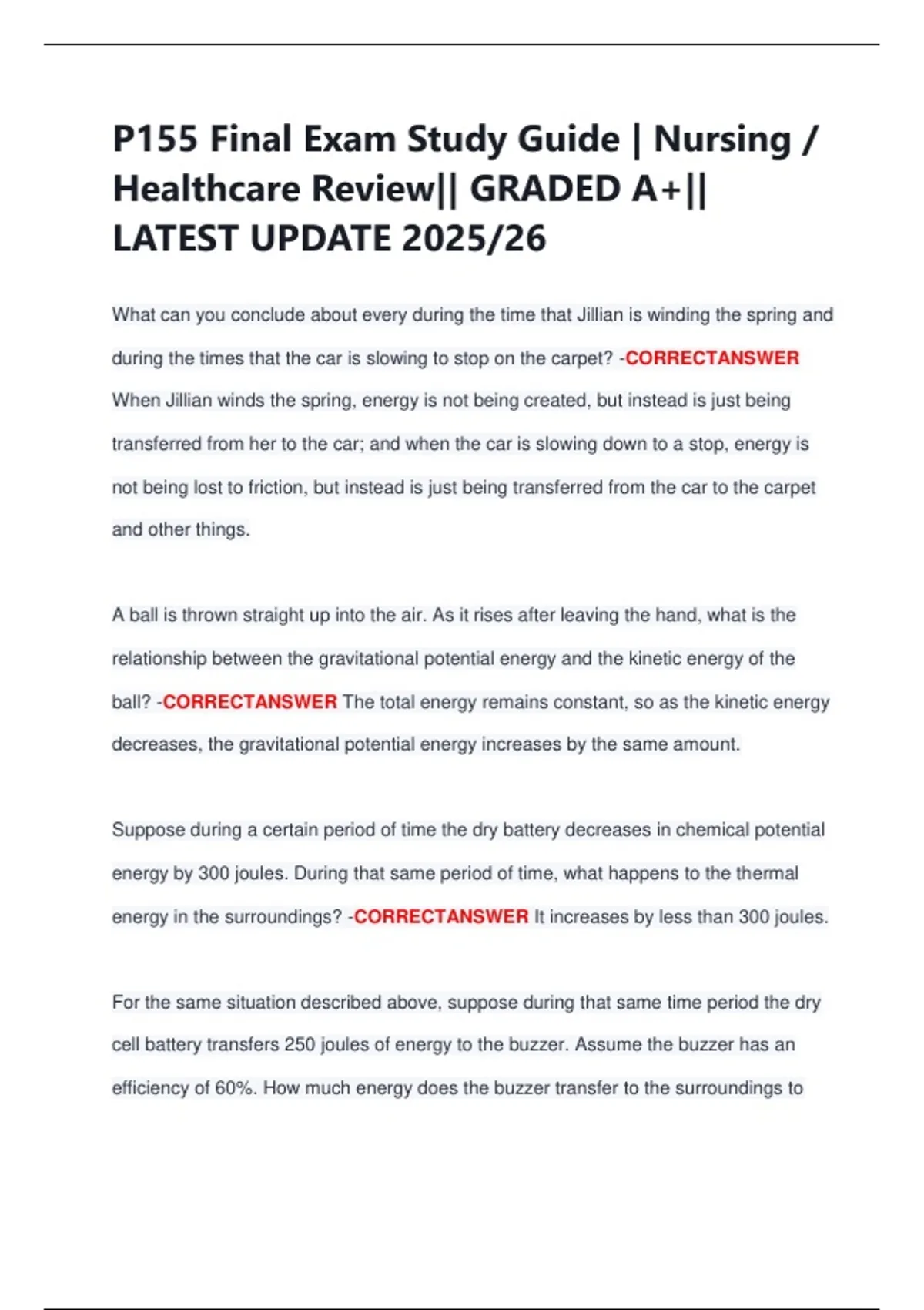 P155 Final Exam Study Guide | Nursing / Healthcare Review|| GRADED A+|| LATEST UPDATE 2025/26