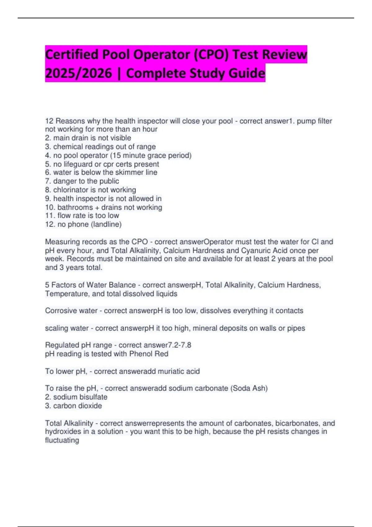 Regulated Total Alkalinity range - correct answer60-180 ppm ideal goal is 100ppm