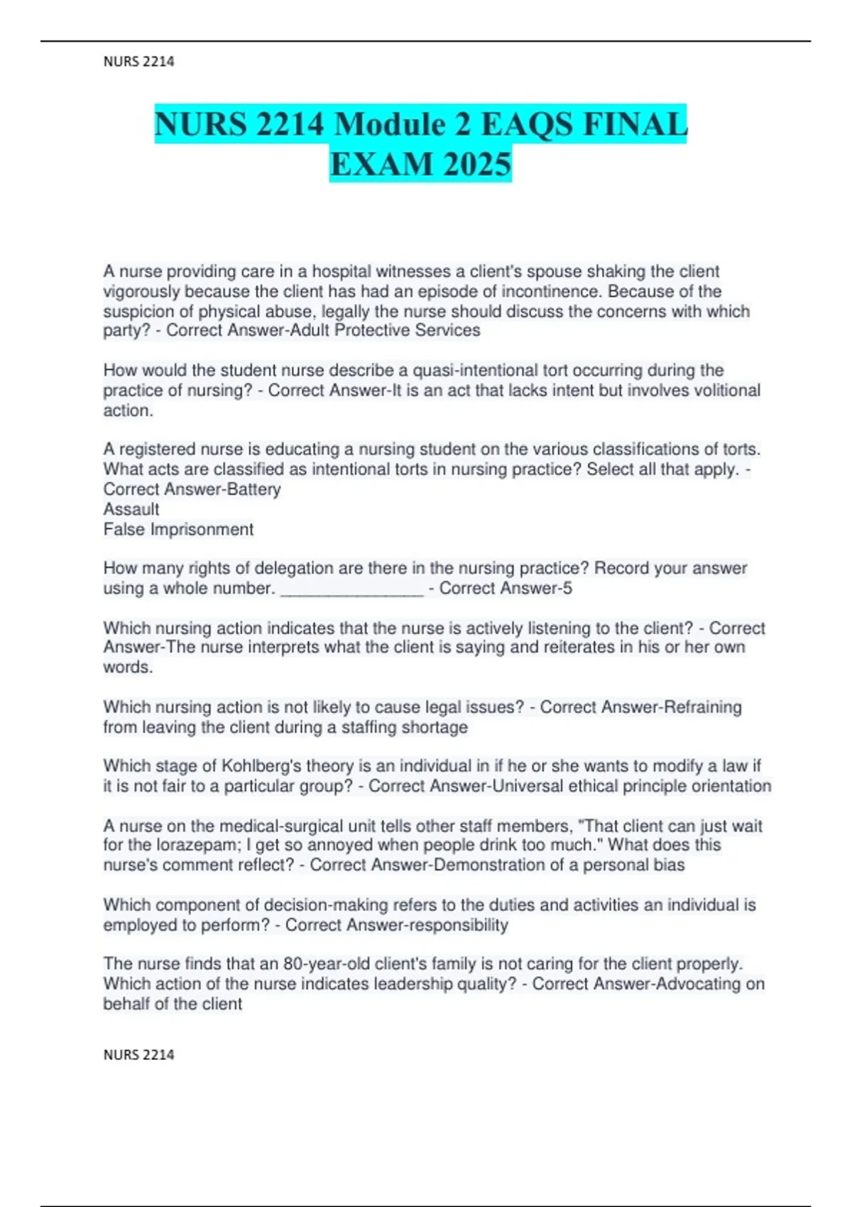 NURS 2214 Module 2 EAQS FINAL EXAM 2025