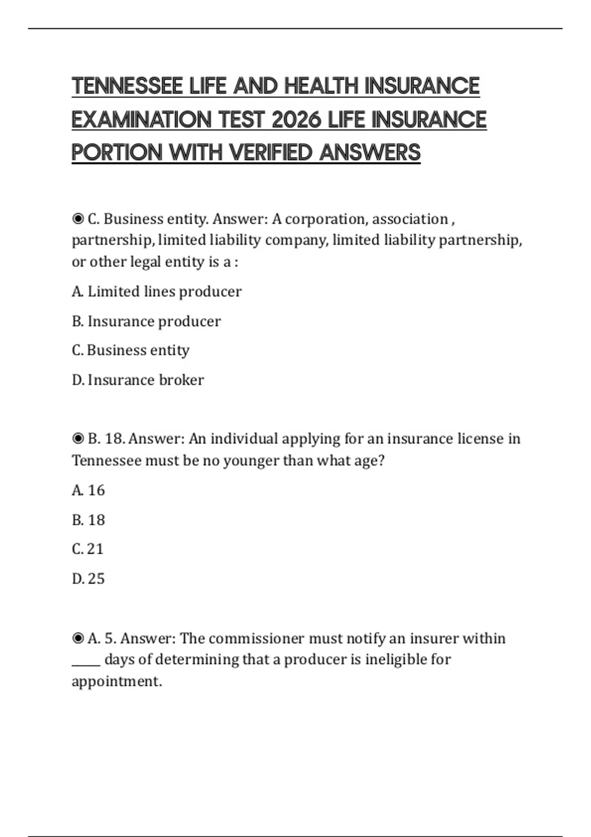 ◉ B. 18. Answer: An individual applying for an insurance license in