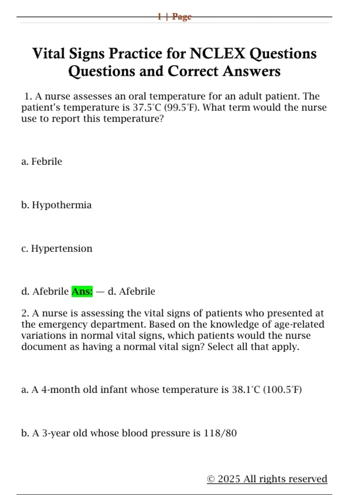 Vital Signs Practice for NCLEX Questions Questions and Correct AnswersVital Signs Practice for NCLEX Questions Questions and Correct AnswersVital Signs Practice for NCLEX Questions Questions and Correct AnswersVital Signs Practice for NCLEX Questions Questions and Correct Answers