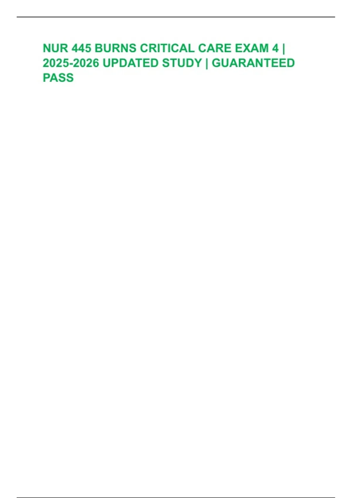 NUR 445 BURNS CRITICAL CARE EXAM 4 | UPDATED STUDY | GUARANTEED PASS