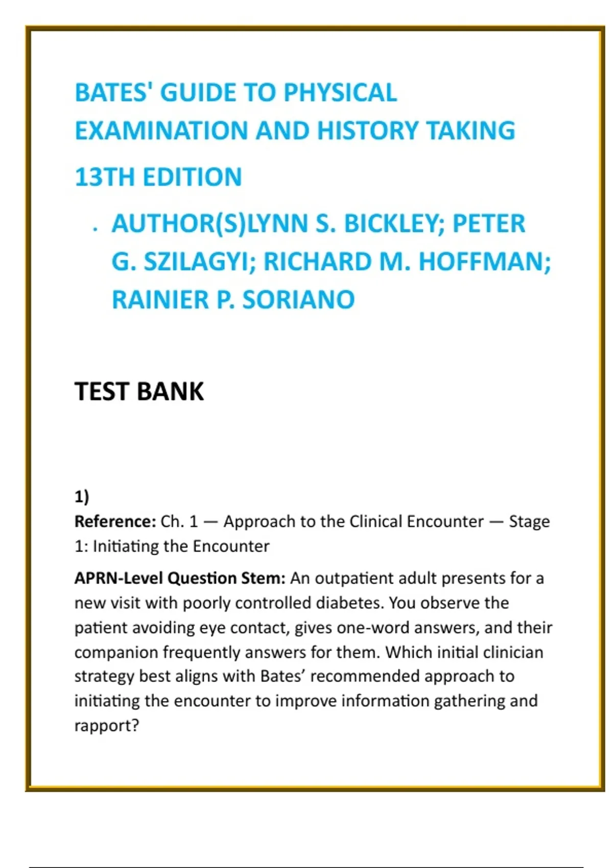 Rationale — Correct Option: Bates recommends obtaining the