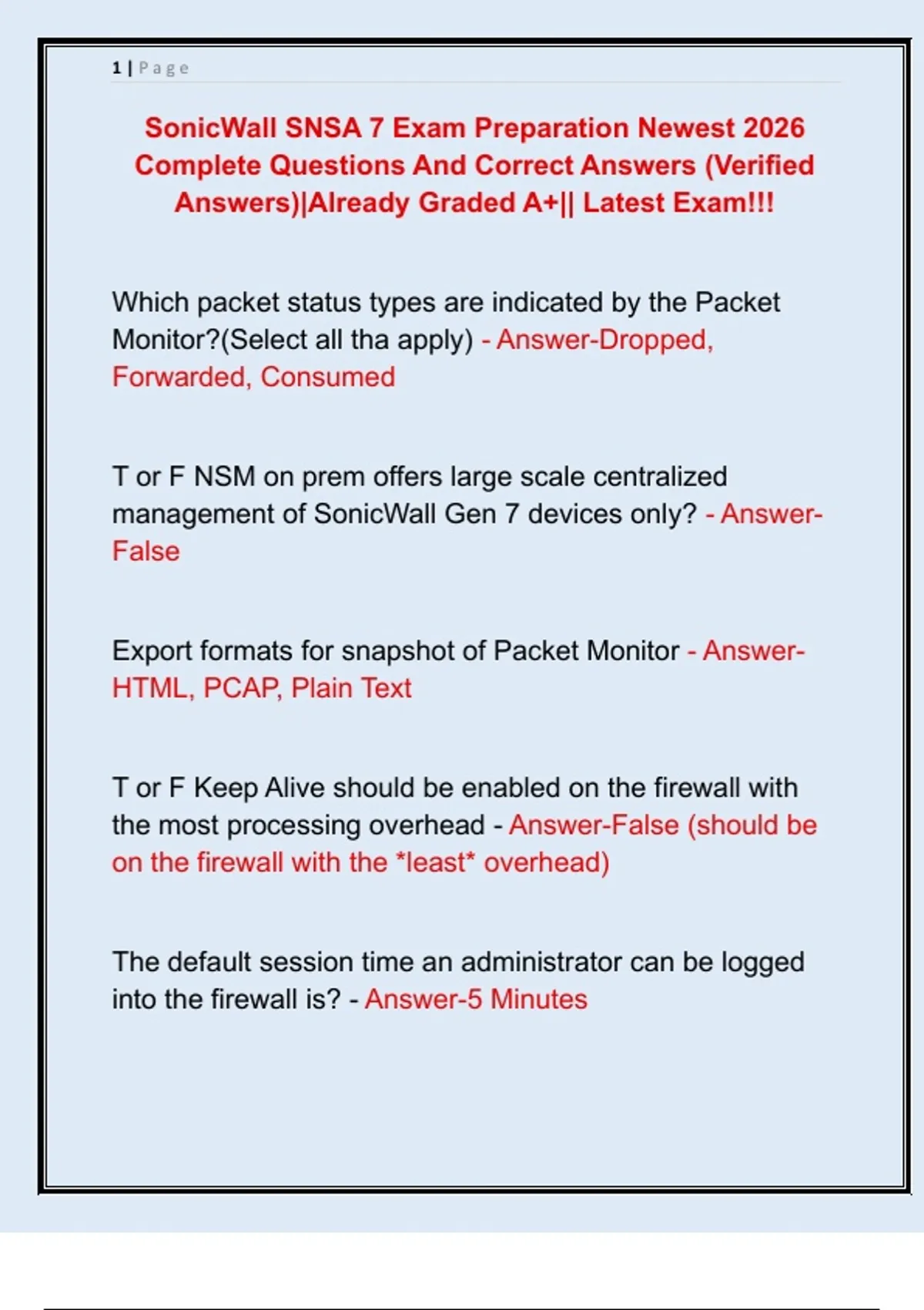 SonicWall SNSA 7 Exam Preparation Newest 2026