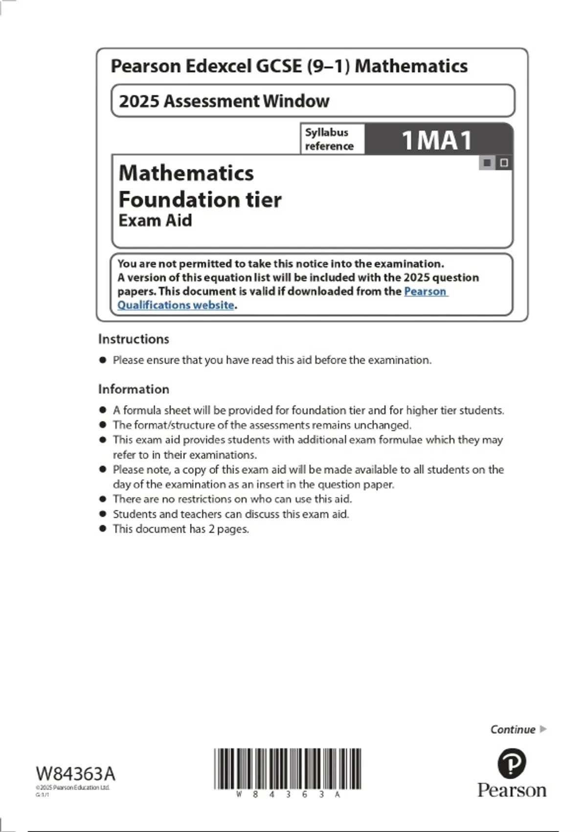 2025 Pearson Edexcel GCSE (9–1) Mathematics Mathematics Foundation tier Exam Aid Combined Question Paper and Marking Scheme