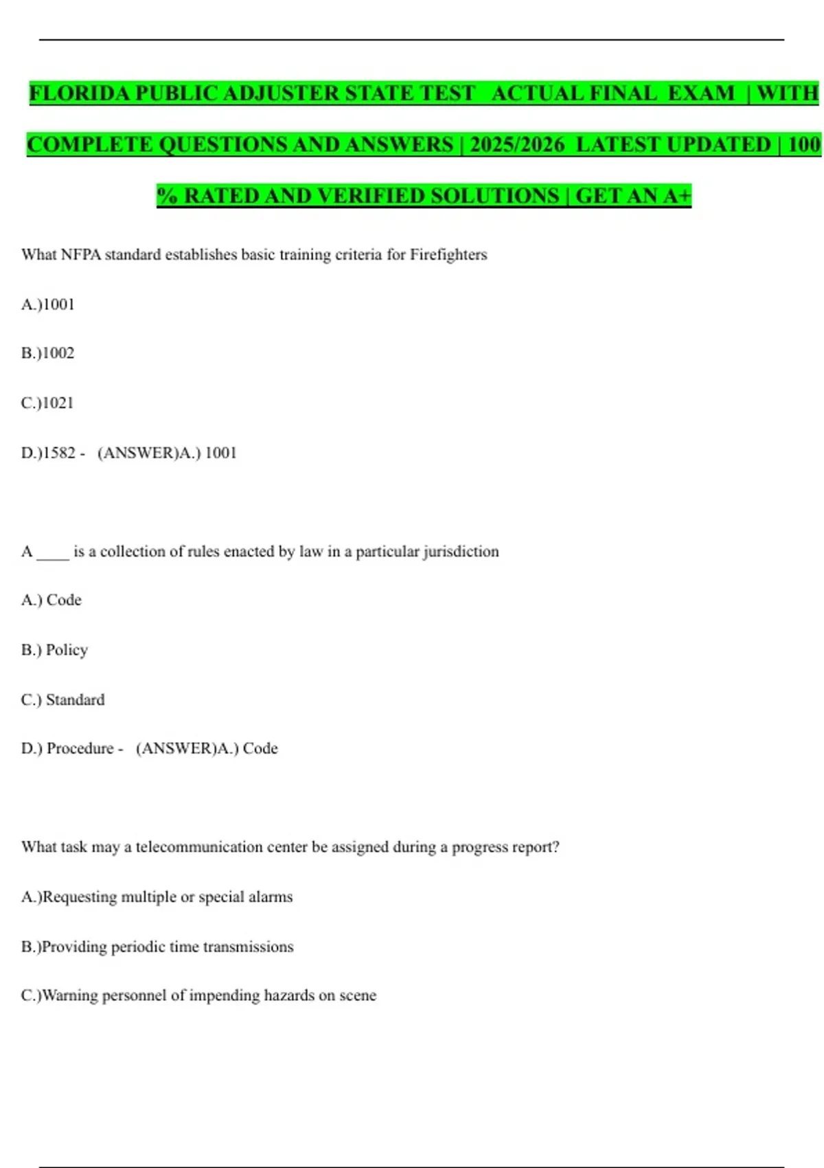 COMPLETE QUESTIONS AND ANSWERS | 2025/2026 LATEST UPDATED | 100