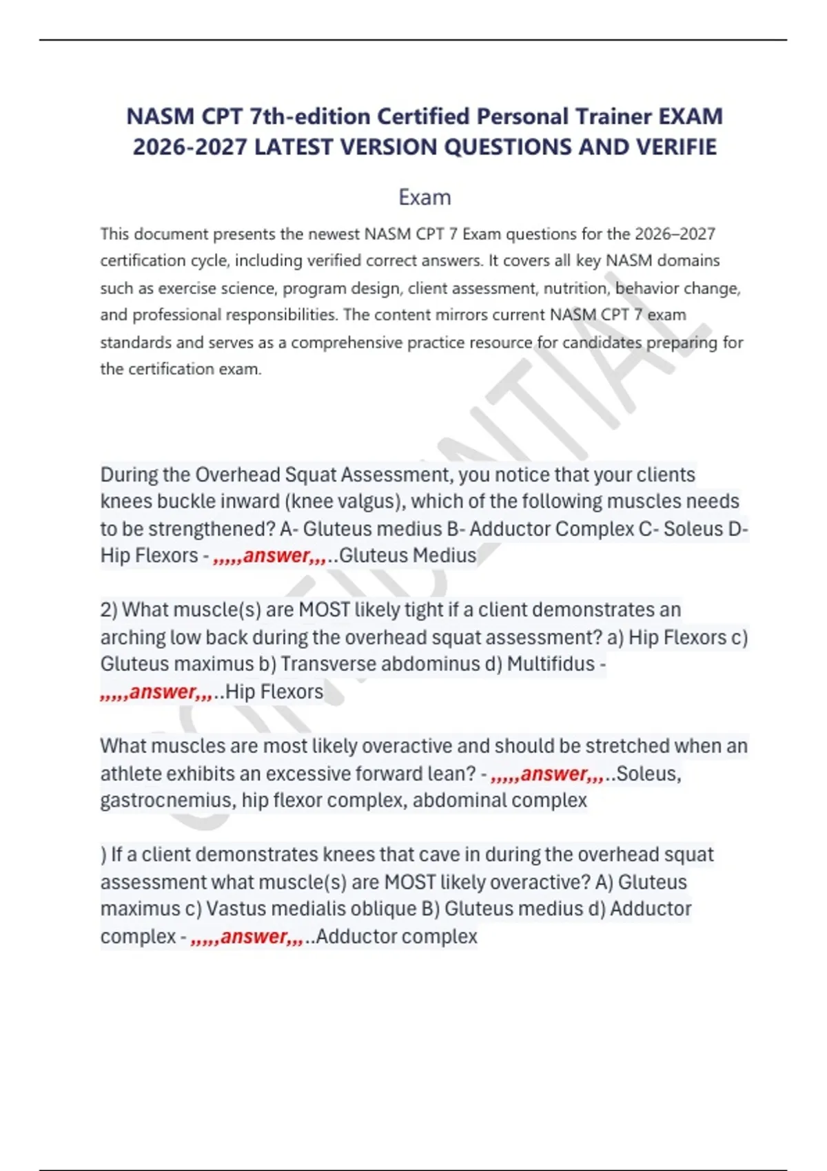 This document presents the newest NASM CPT 7 Exam questions for the 2026–2027