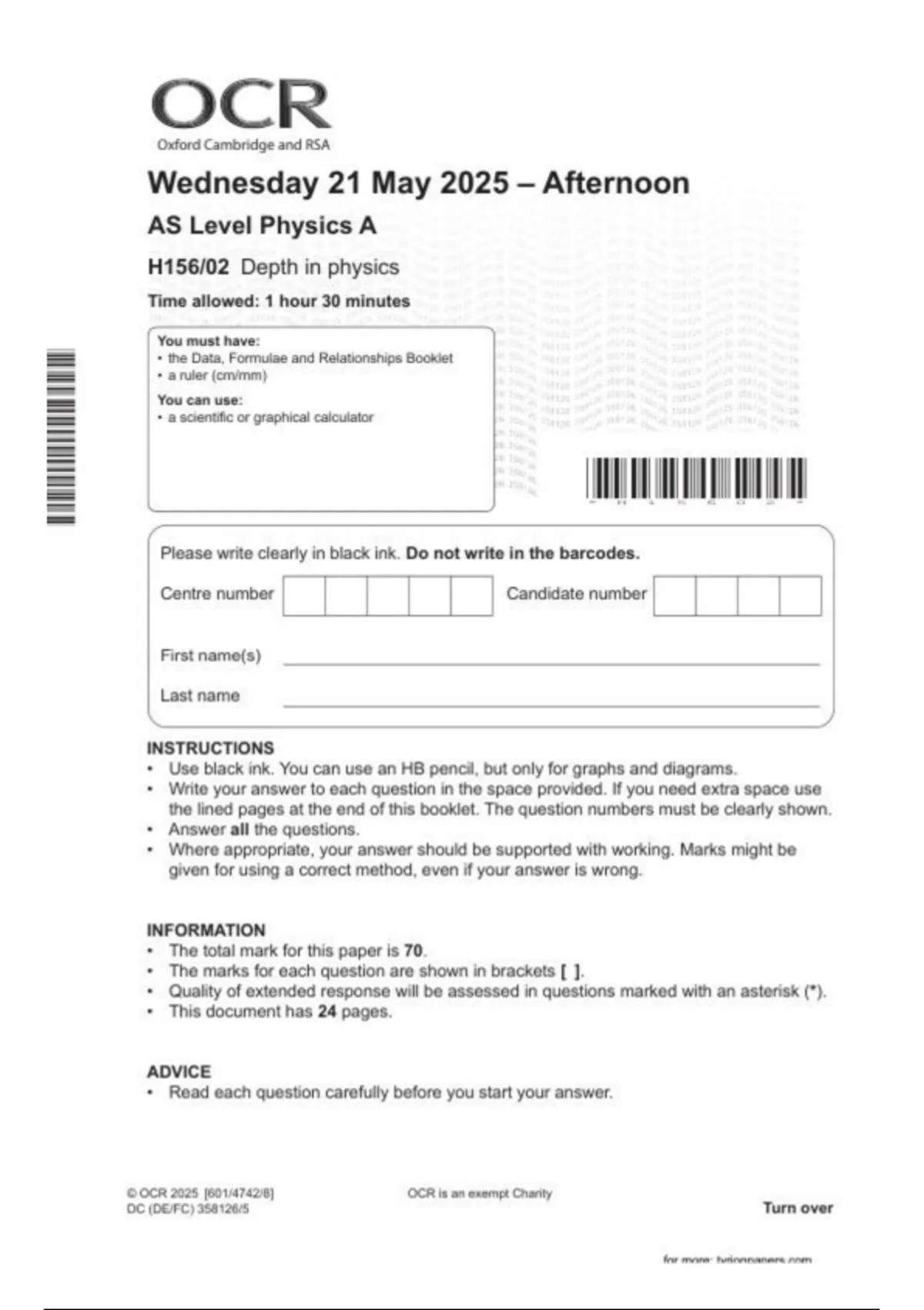 ocr 2025 as level physics a paper 2 h156 02june 2025question paper and mark schememergedocr