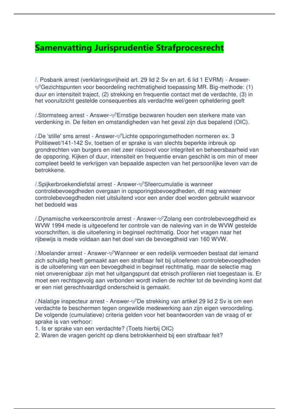/.Stormsteeg arrest - Answer-✅Ernstige bezwaren houden een sterkere mate van