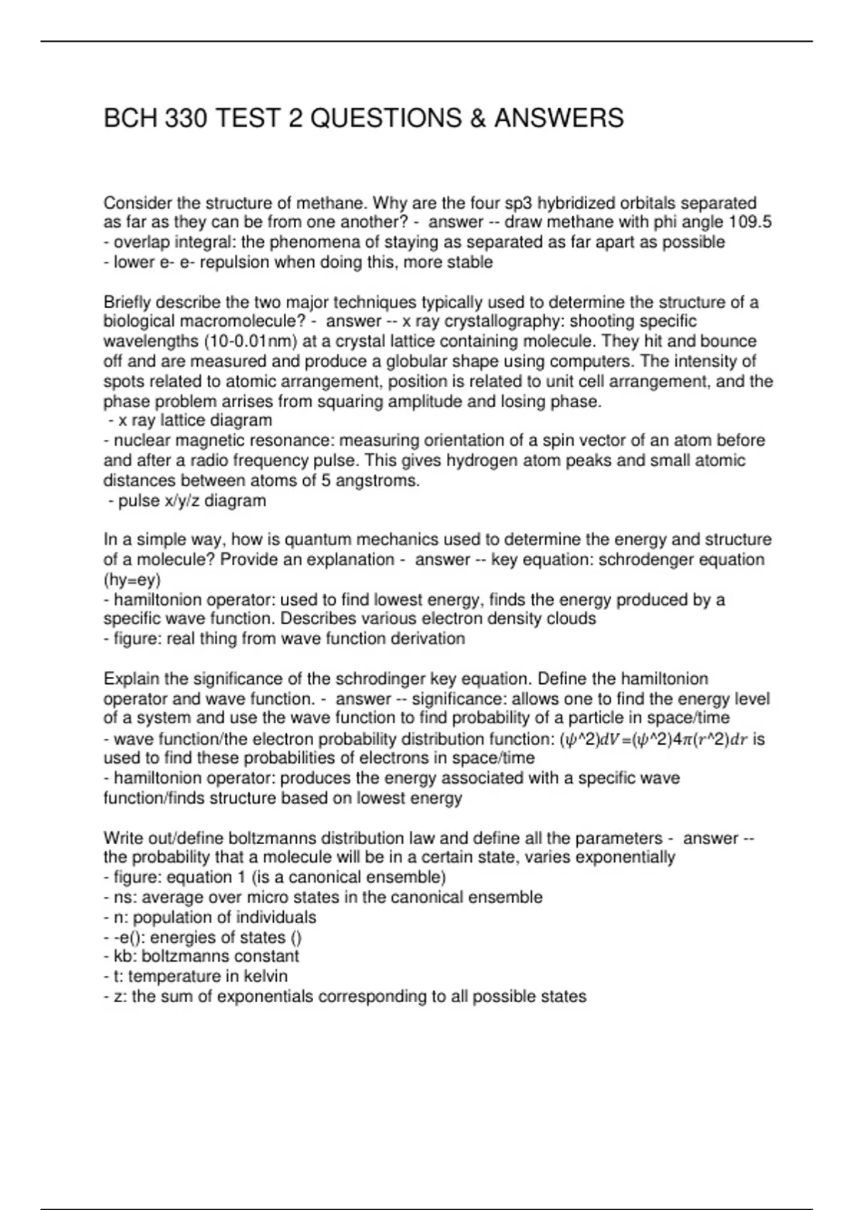 BCH 330 TEST 2 QUESTIONS & ANSWERS