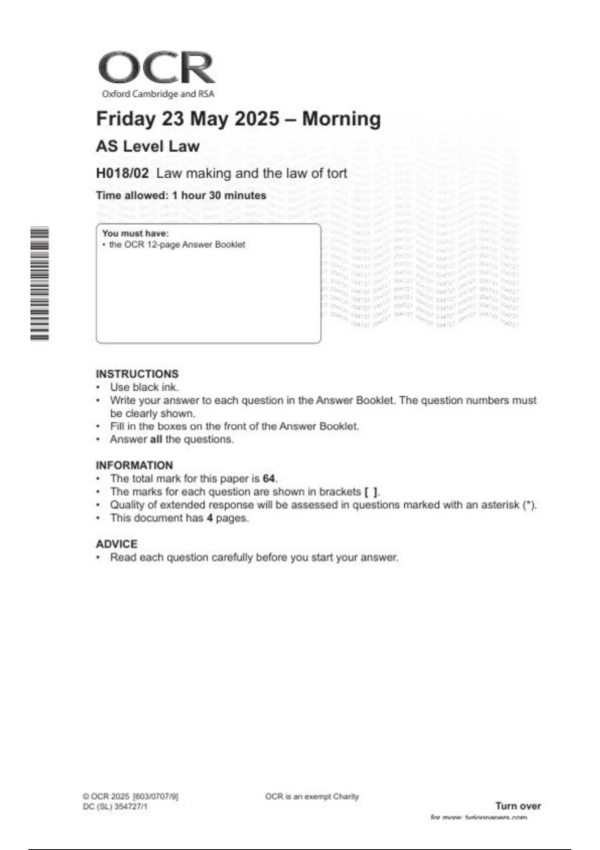 OCR 2025 AS Level LAW Paper 2| H018-02|June 2025|Question paper and Mark scheme|MERGED