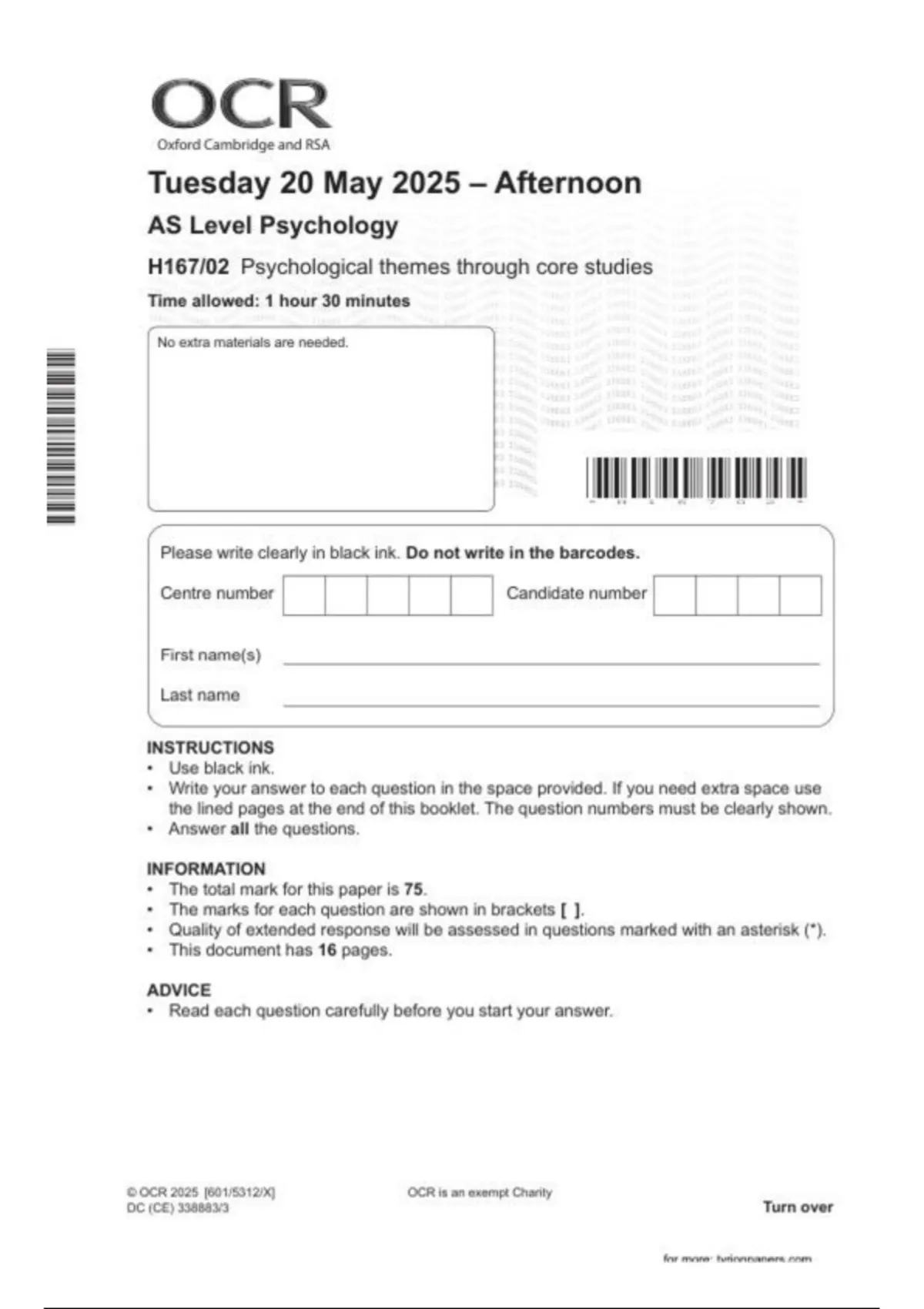 ocr 2025 as level psychology paper 2 h167 02june 2025question paper and mark schememergedocr
