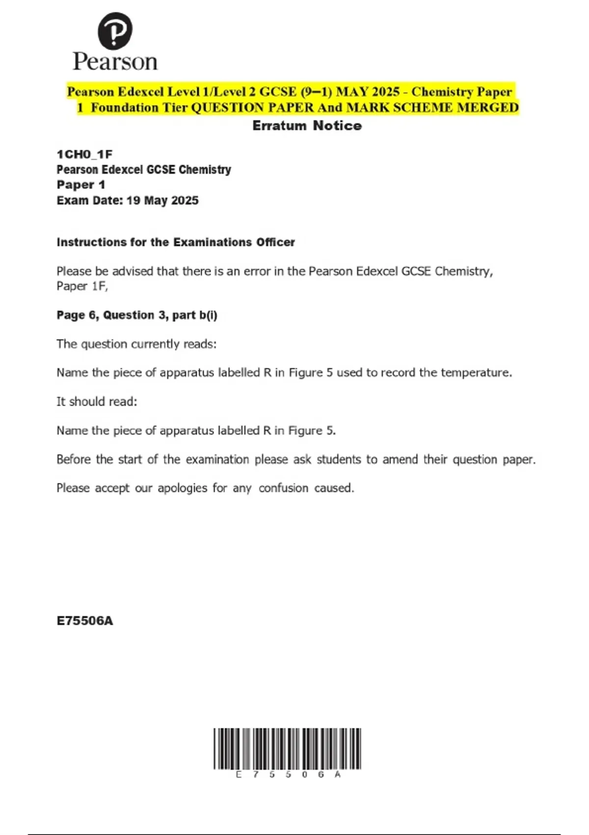 Pearson Edexcel Level 1/Level 2 GCSE (9–1) МАY 2025 - Chemistry Paper 1 Foundation Tier QUESTION PAPER And MARK SCHEME MERGED