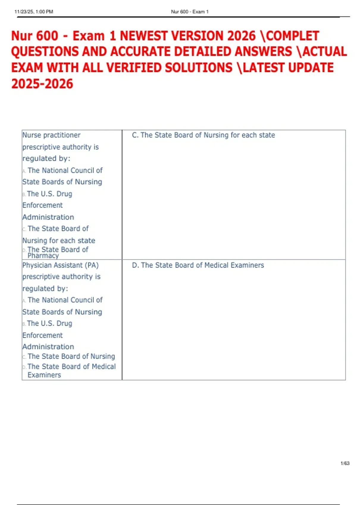 , 11/23/25, 1:00 PM Nur 600 - Exam 1