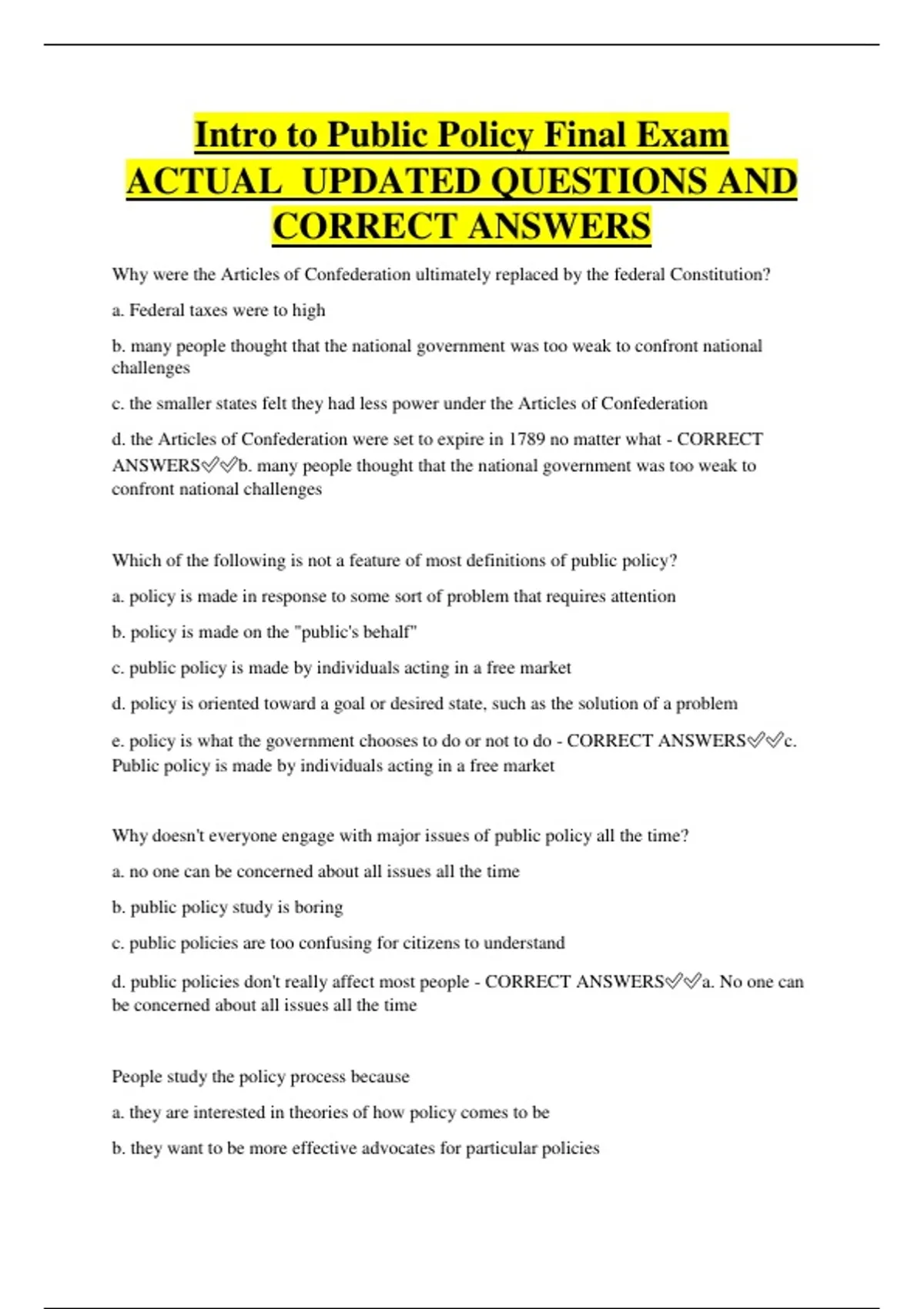 d. public policies don't really affect most people - CORRECT ANSWERS✅✅a. No one can