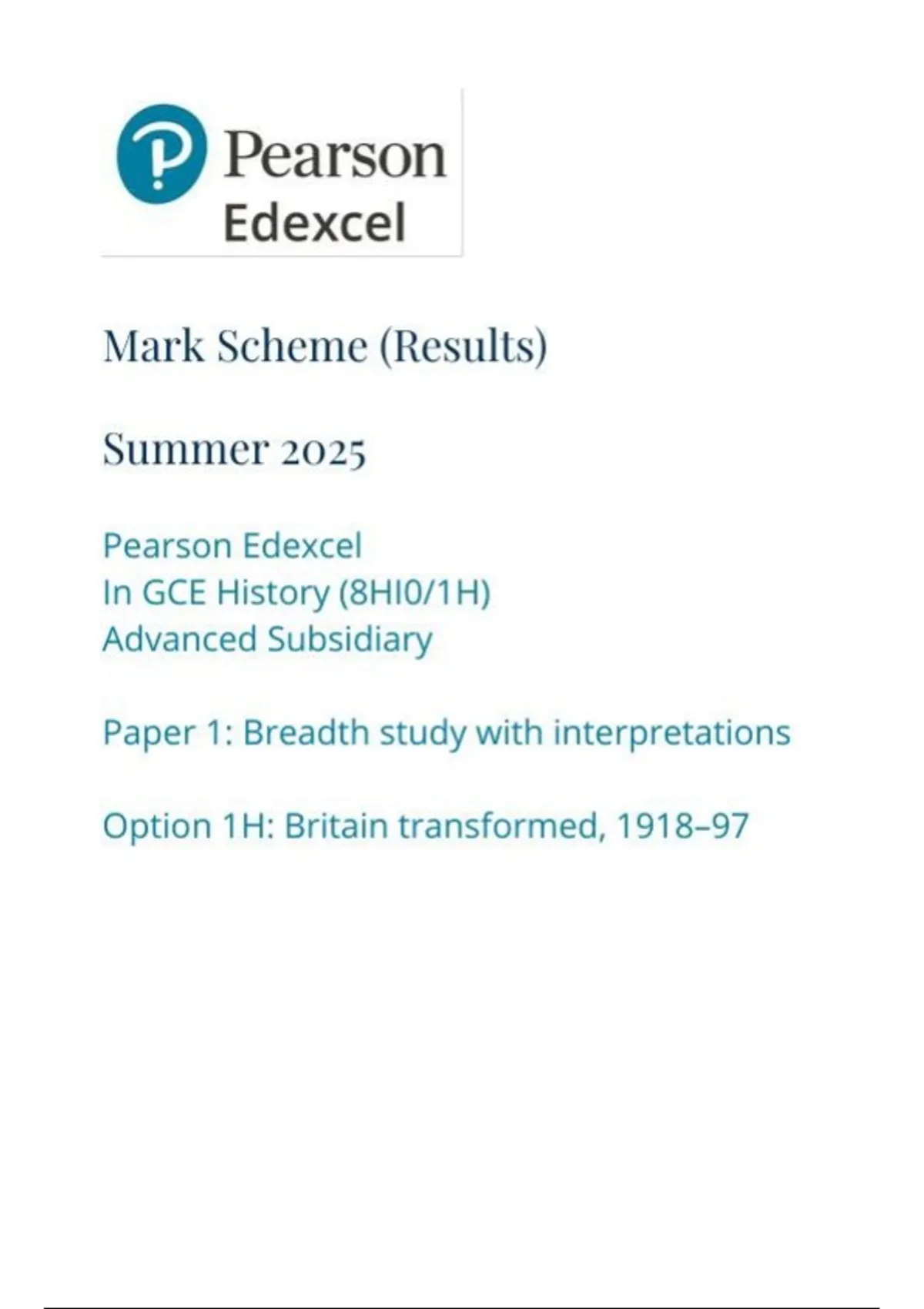 Pearson Edexcel as level History |final mark scheme |2025|8HI0/1h