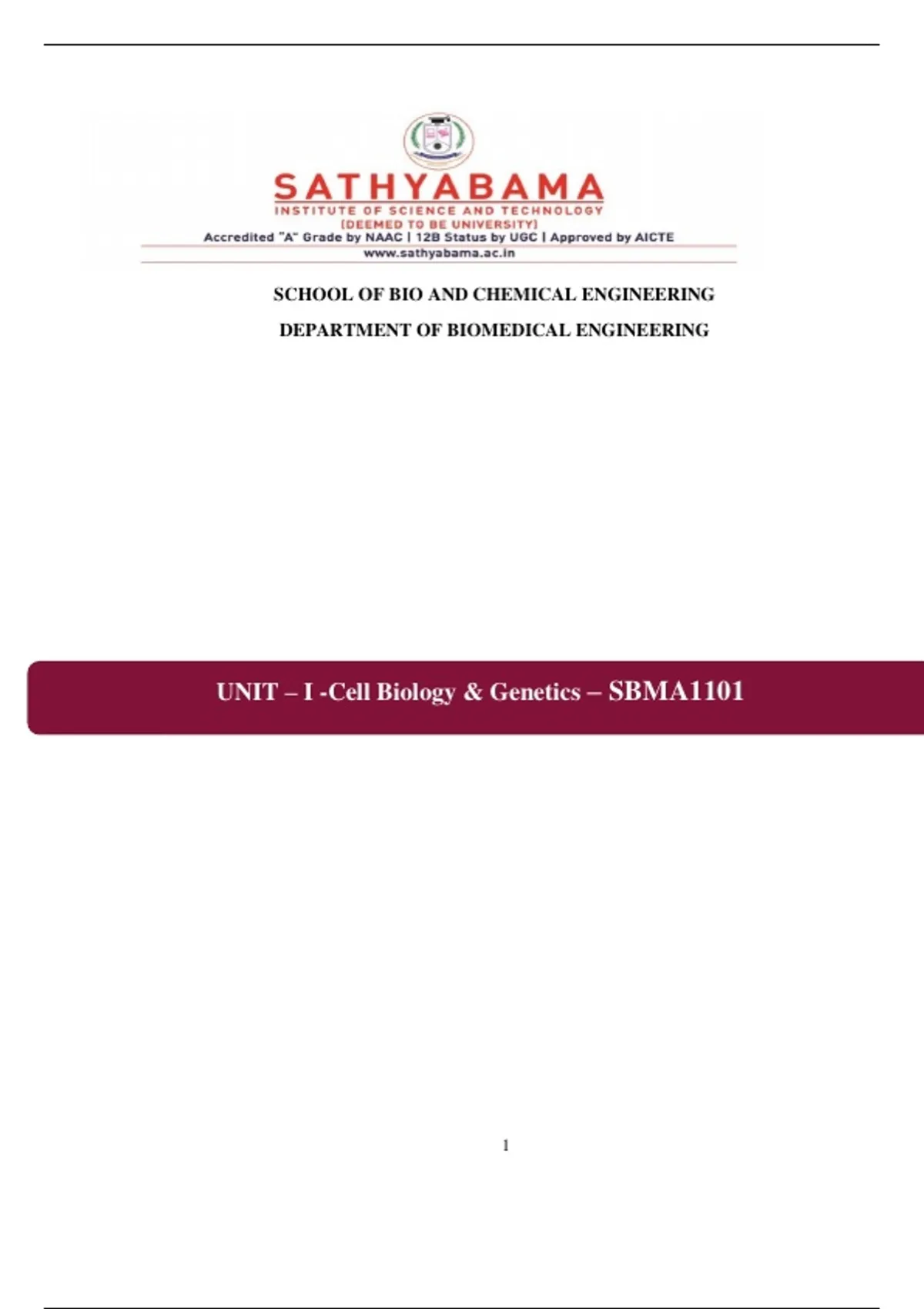 UNIT – I -Cell Biology & Genetics – SBMA1101
