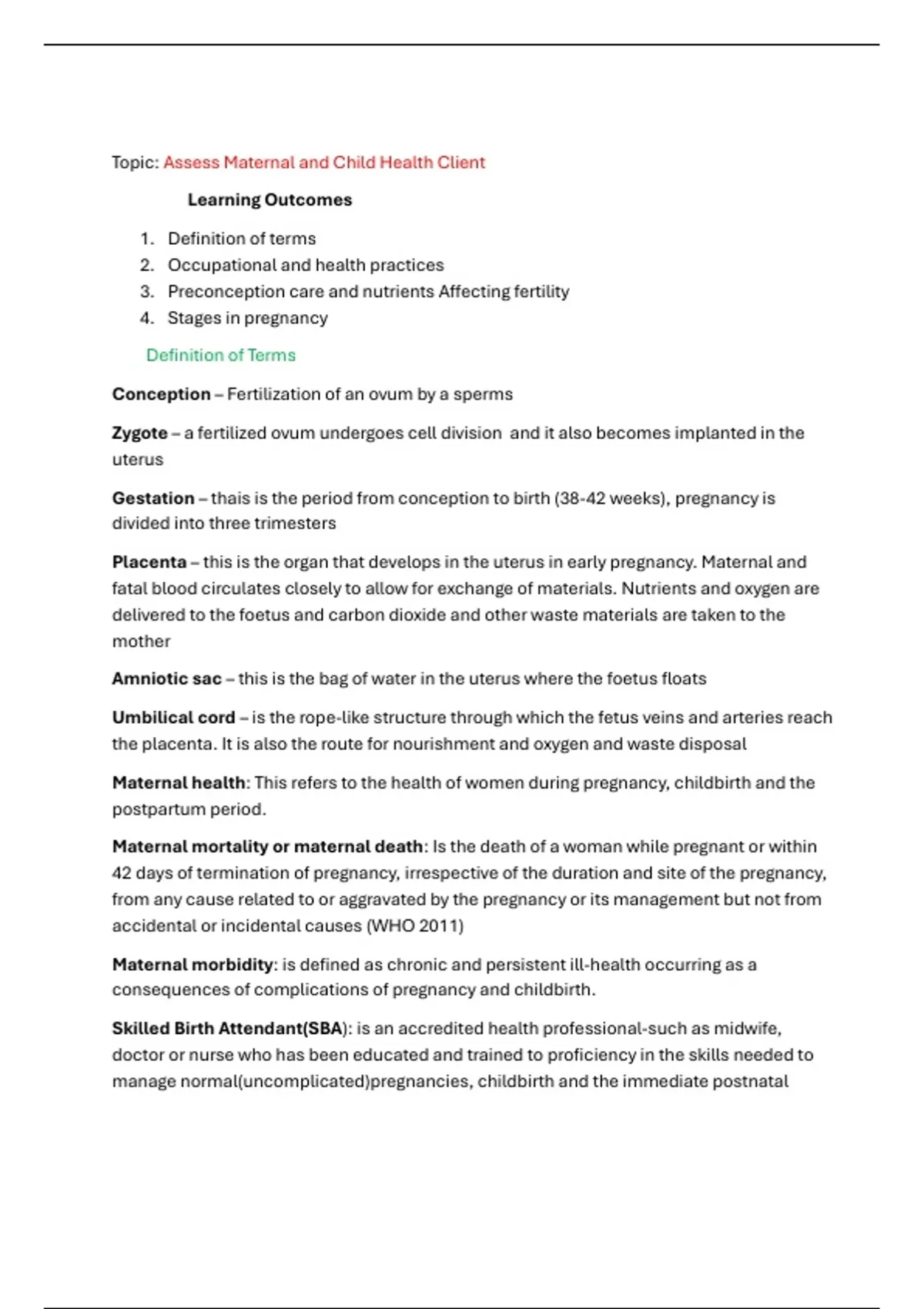 Maternal health: This refers to the health of women during pregnancy, childbirth and the