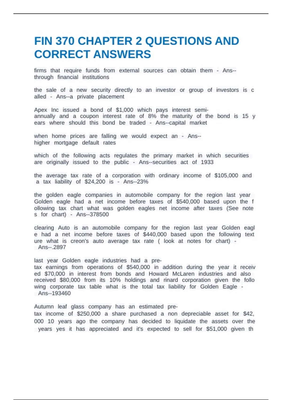 FIN 370 CHAPTER 2 QUESTIONS AND