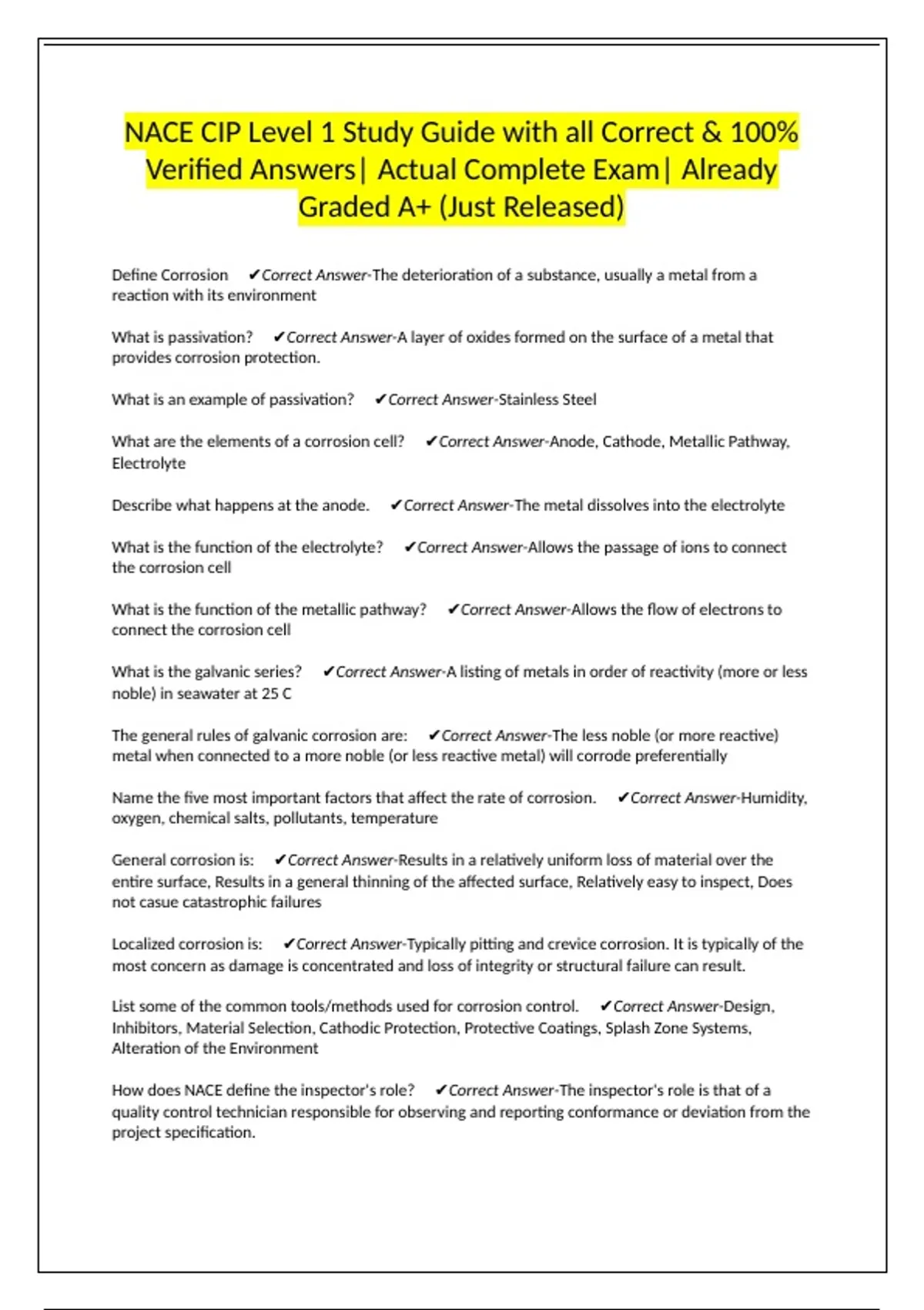 NACE CIP Level 1 Study Guide with all Correct & 100% Verified Answers| Actual Complete Exam| Already Graded A+ (Just Released)