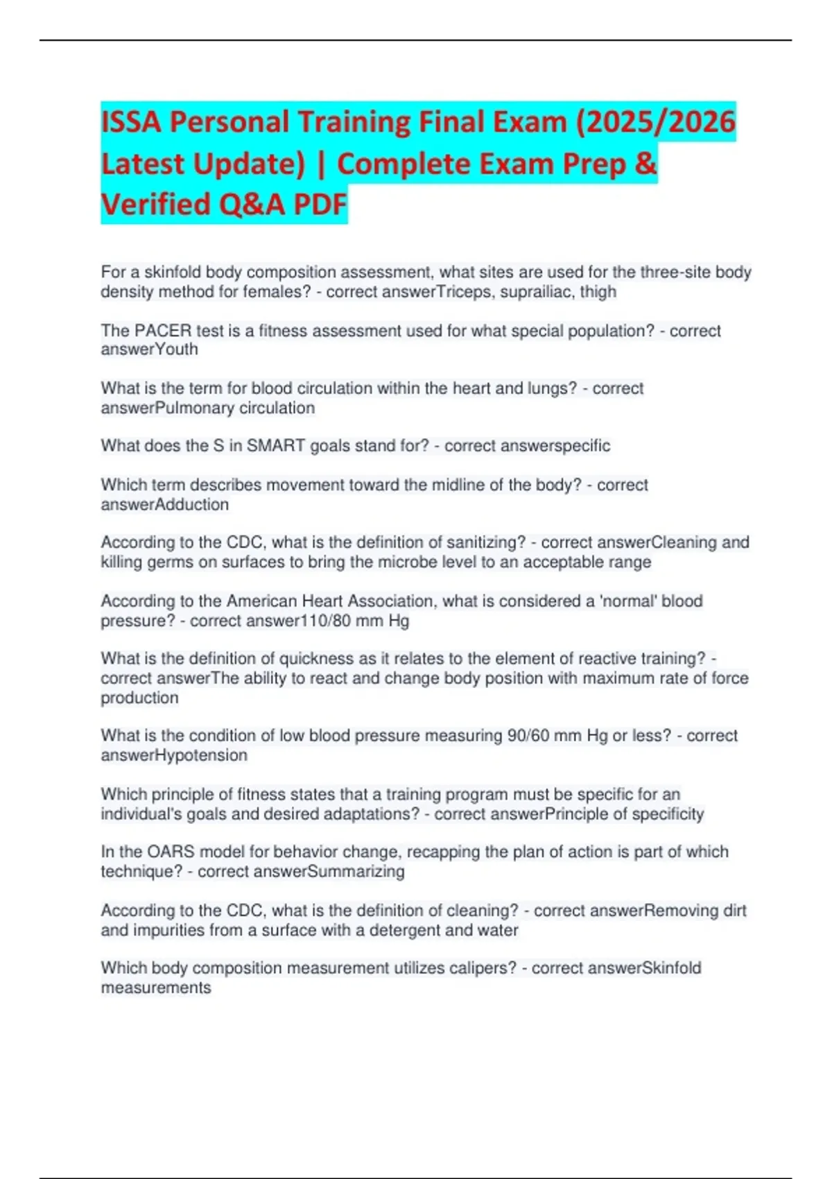 ISSA Personal Training Final Exam (2025/2026 Latest Update) | Complete Exam Prep & Verified Q&A PDF