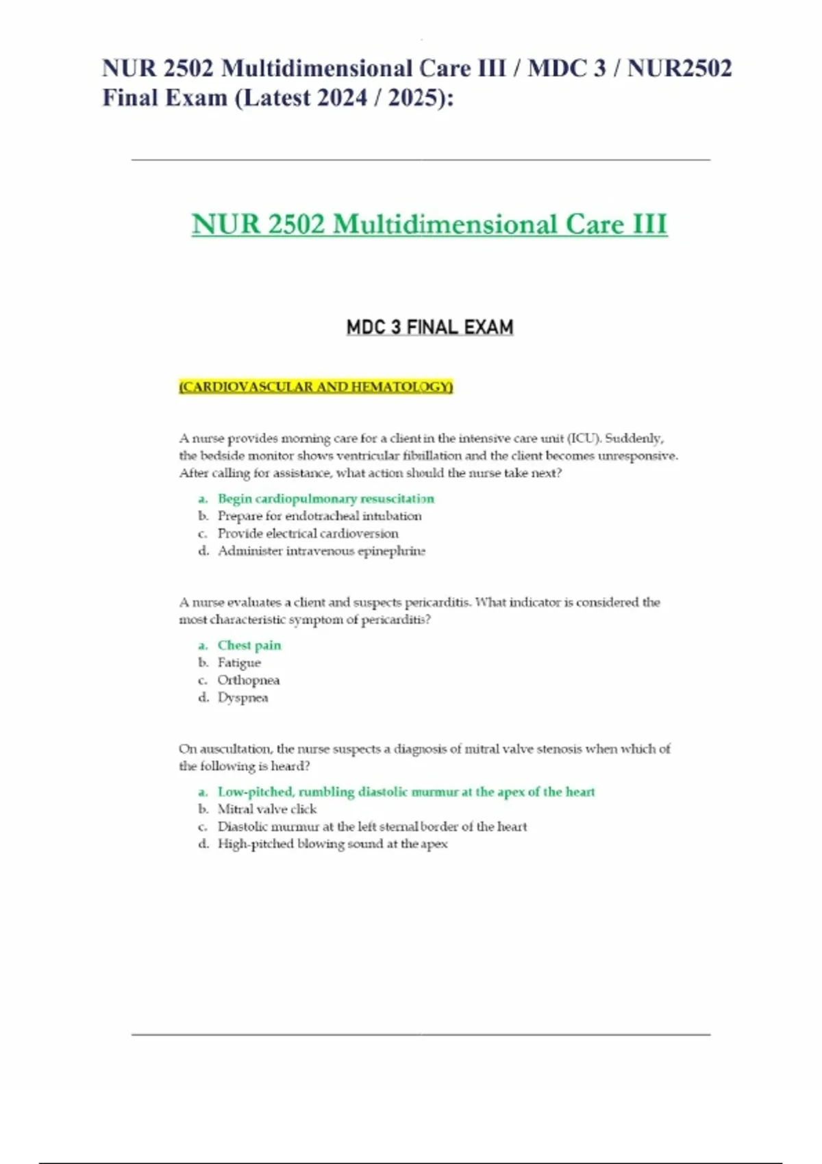 NUR 2502 – Multidimensional Care III (MDC 3) Final Exam – Latest Updated Edition.pdf