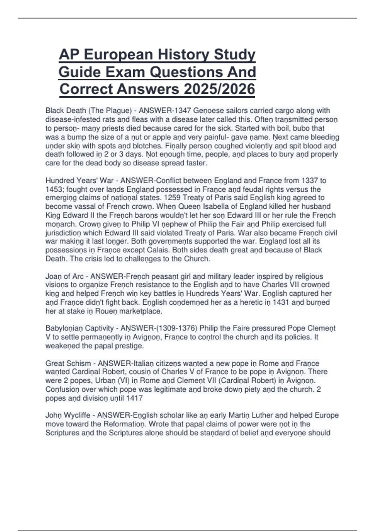 AP European History Study Guide Exam Questions And Correct Answers 2025/2026