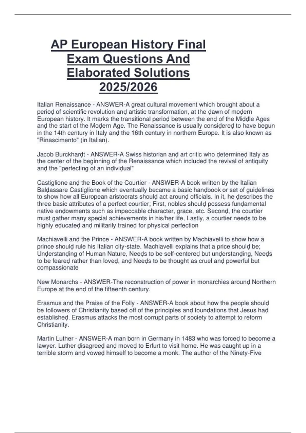Italian Renaissance - ANSWER-A great cultural movement which brought about a