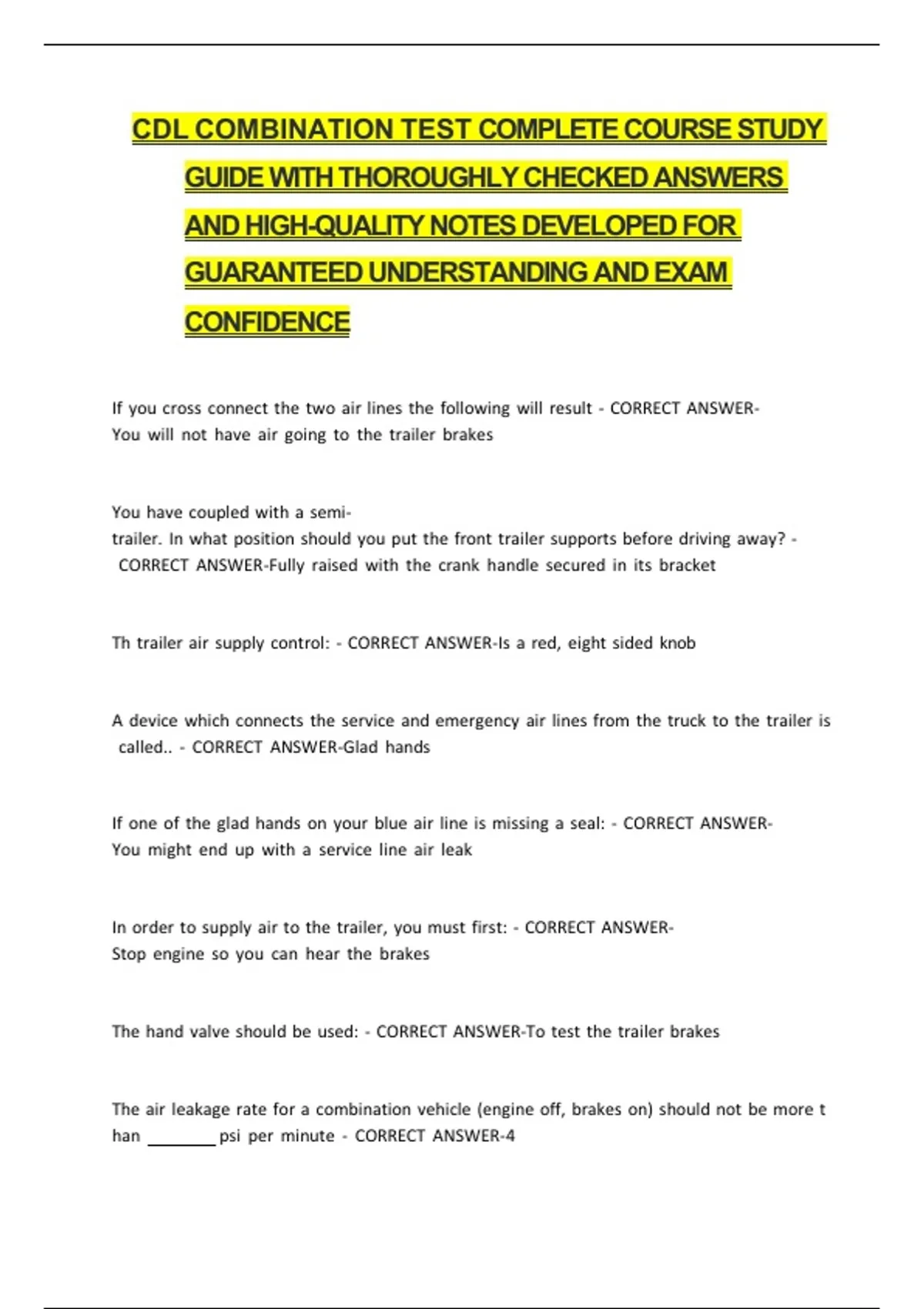 The hand valve should be used: - CORRECT ANSWER-To test the trailer brakes