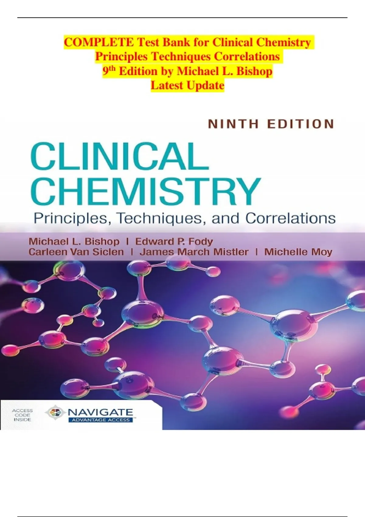 Complete Test Bank for Clinical Chemistry: Principles, Techniques, and Correlations, 9th Edition – Multiple Choice Questions & Answers for All Chapters | Instructor Resource