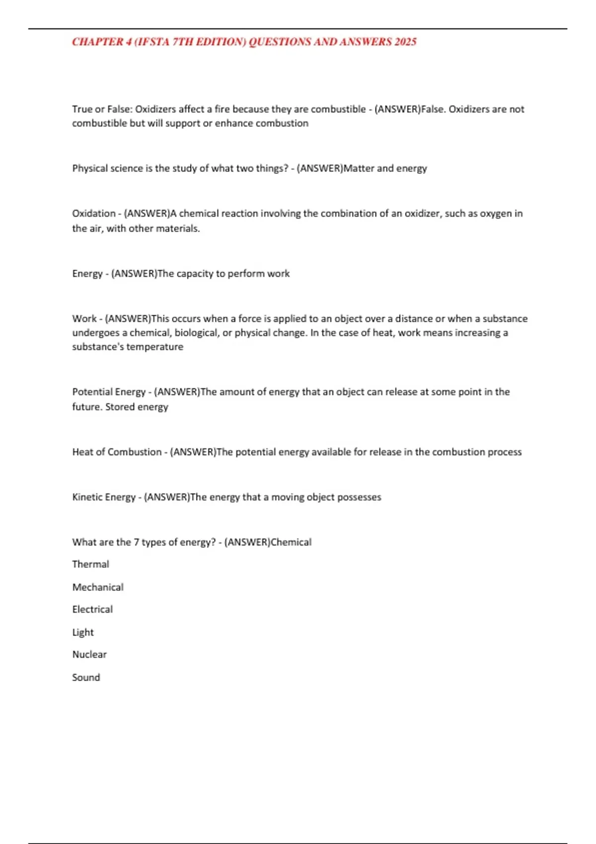 What are the 7 types of energy? - (ANSWER)Chemical