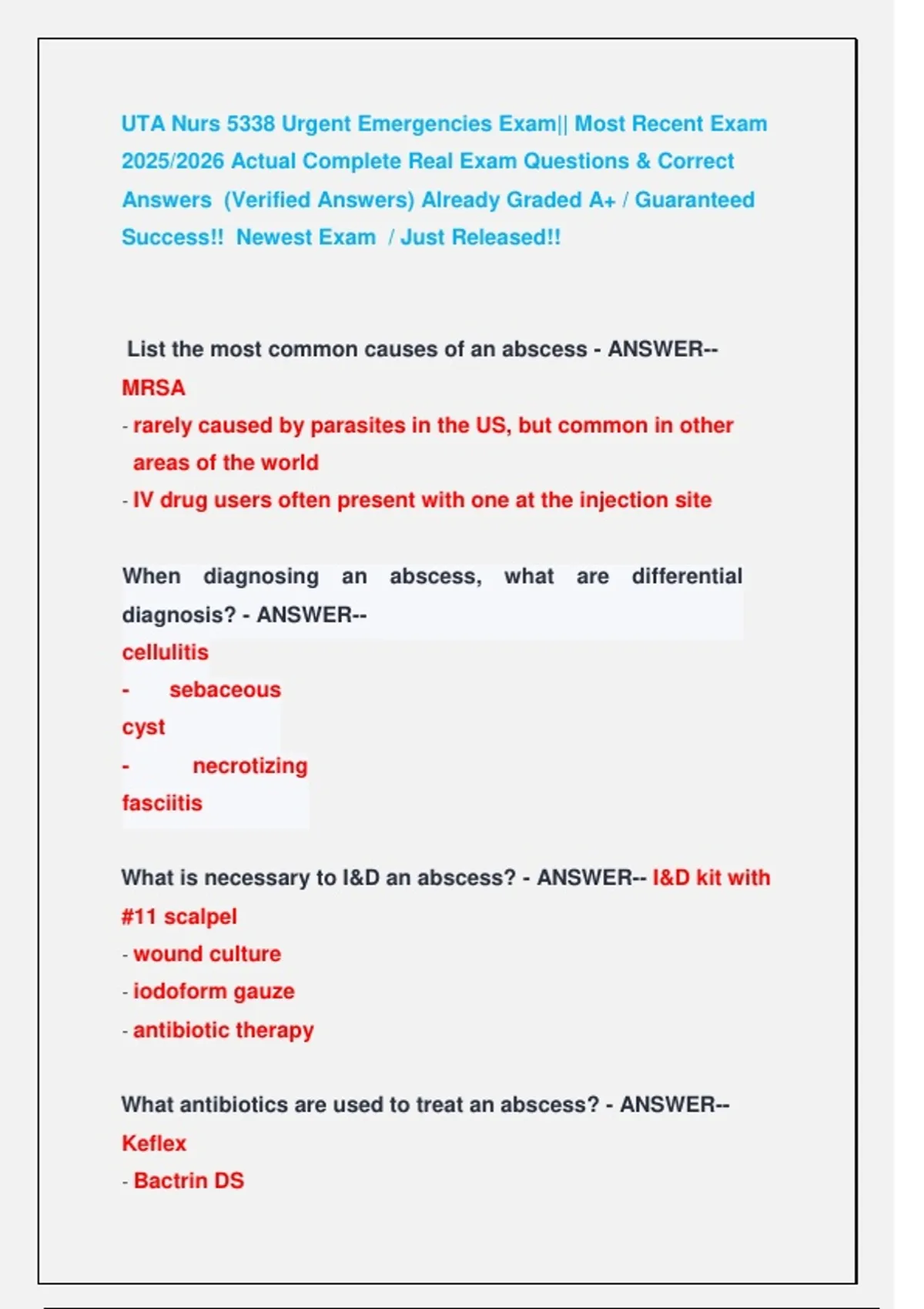UTA Nurs 5338 Urgent Emergencies Exam|| Most Recent Exam 2025/2026 Actual Complete Real Exam Questions & Correct Answers (Verified Answers) Already Graded A+ / Guaranteed Success!! Newest Exam / Just Released!! UTA Nurs 5338 Urgent Emergencies Exam|| Most Recent Exam 2025/2026 Actual Complete Real Exam Questions & Correct Answers (Verified Answers) Already Graded A+ / Guaranteed Success!! Newest Exam / Just Released!! UTA Nurs 5338 Urgent Emergencies Exam|| Most Recent Exam 2025/2026 Actual Complete Real Exam Questions & Correct Answers (Verified Answers) Already Graded A+ / Guaranteed Success!! Newest Exam / Just Released!! UTA Nurs 5338 Urgent Emergencies Exam|| Most Recent Exam 2025/2026 Actual Complete Real Exam Questions & Correct Answers (Verified Answers) Already Graded A+ / Guaranteed Success!! Newest Exam / Just Released!! UTA Nurs 5338 Urgent Emergencies Exam|| Most Recent Exam 2025/2026 Actual Complete Real Exam Questions & Correct Answers (Verified Answers) Already Graded A+ / Guaranteed Success!! Newest Exam / Just Released!!
