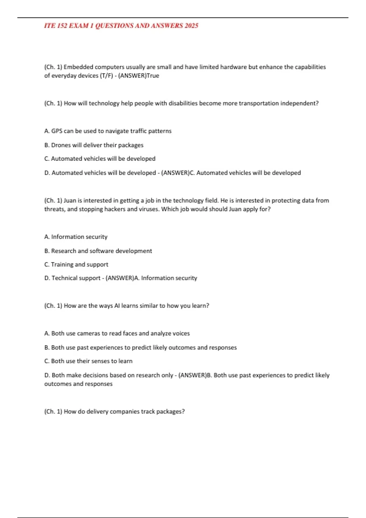 , ITE 152 EXAM 1 QUESTIONS AND ANSWERS 2025