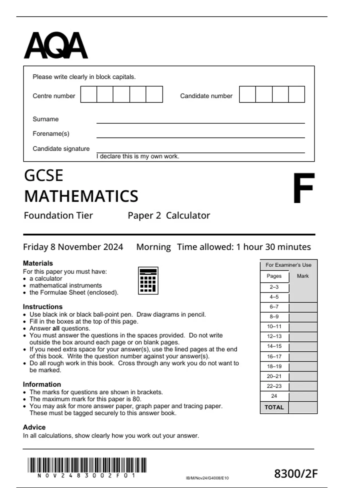 Friday 8 November 2024 Morning Time allowed: 1 hour 30 minutes
