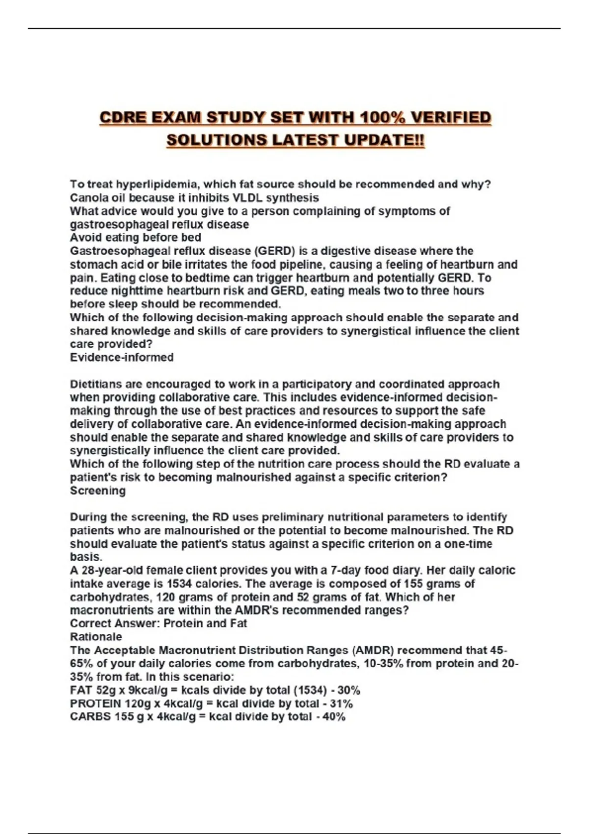 CDRE EXAM STUDY SET WITH 100% VERIFIED SOLUTIONS LATEST UPDATE!!...