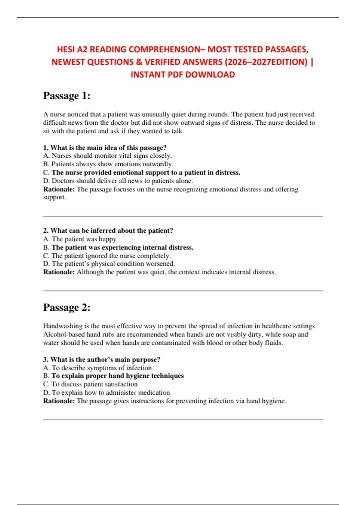 HESI A2 READING COMPREHENSION– MOST TESTED PASSAGES, NEWEST QUESTIONS & VERIFIED ANSWERS (2026–2027EDITION) | INSTANT PDF DOWNLOAD