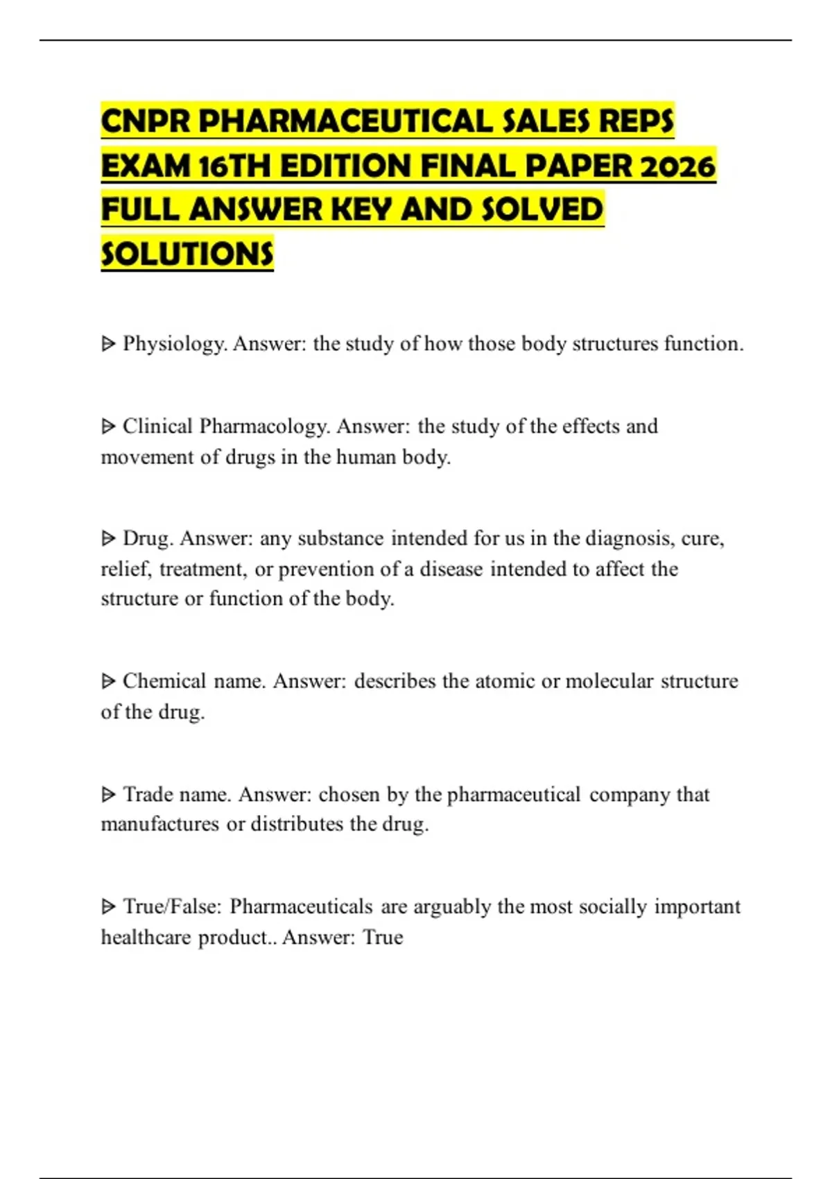your drug or product.. Answer: False