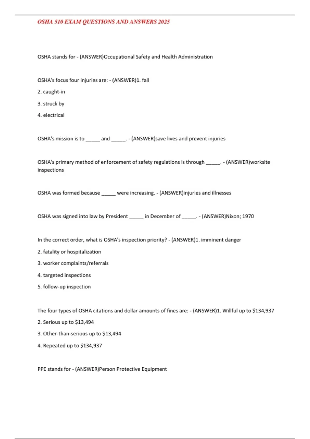, OSHA 510 EXAM QUESTIONS AND ANSWERS 2025