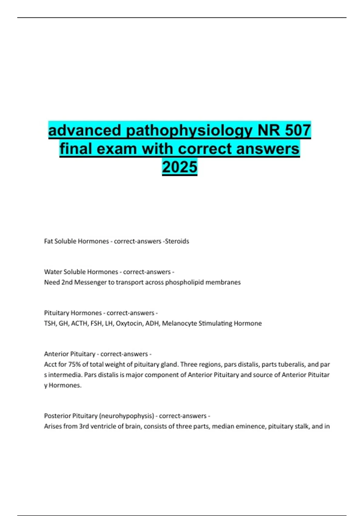 advanced pathophysiology NR 507 final exam with correct answers 2025