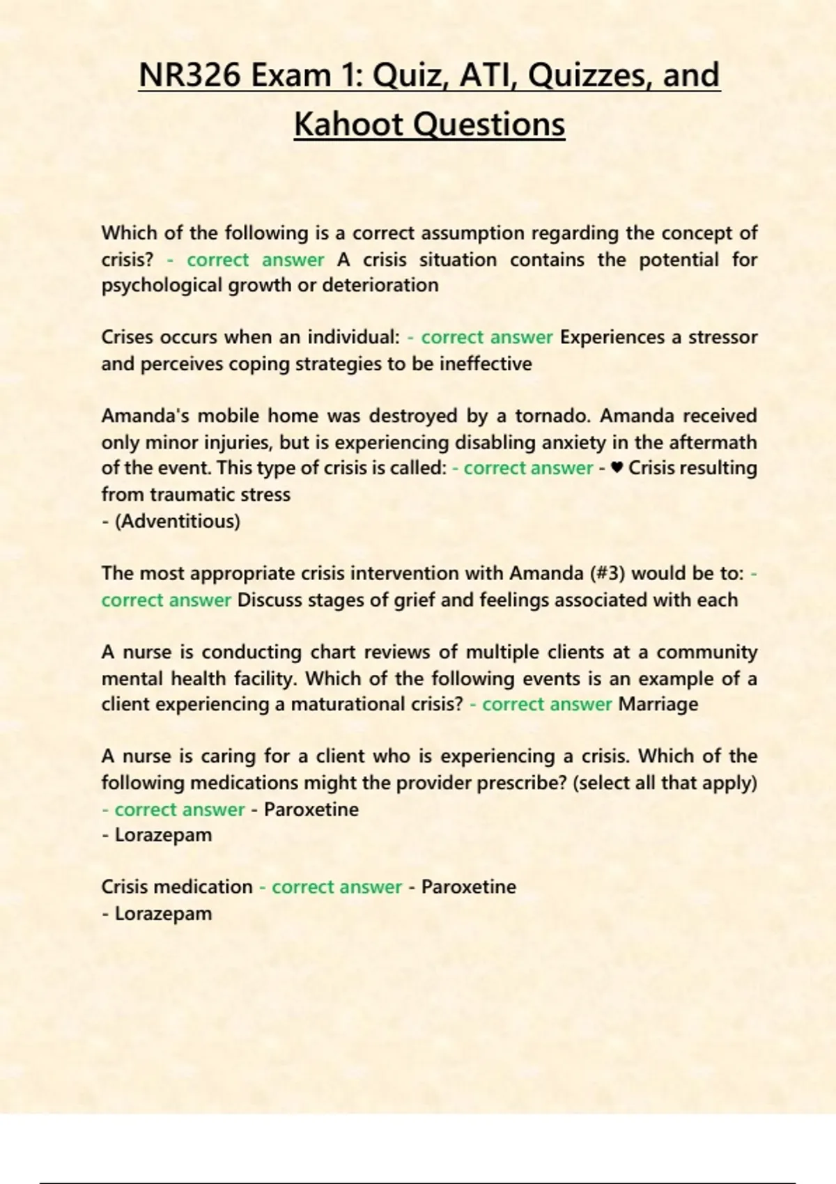 , NR326 Exam 1: Quiz, ATI, Quizzes, and