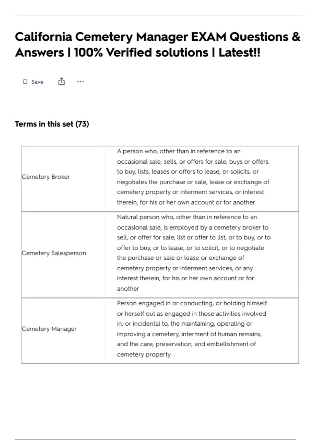 California Cemetery Manager EXAM Questions & Answers | 100% Verified solutions | Latest!!