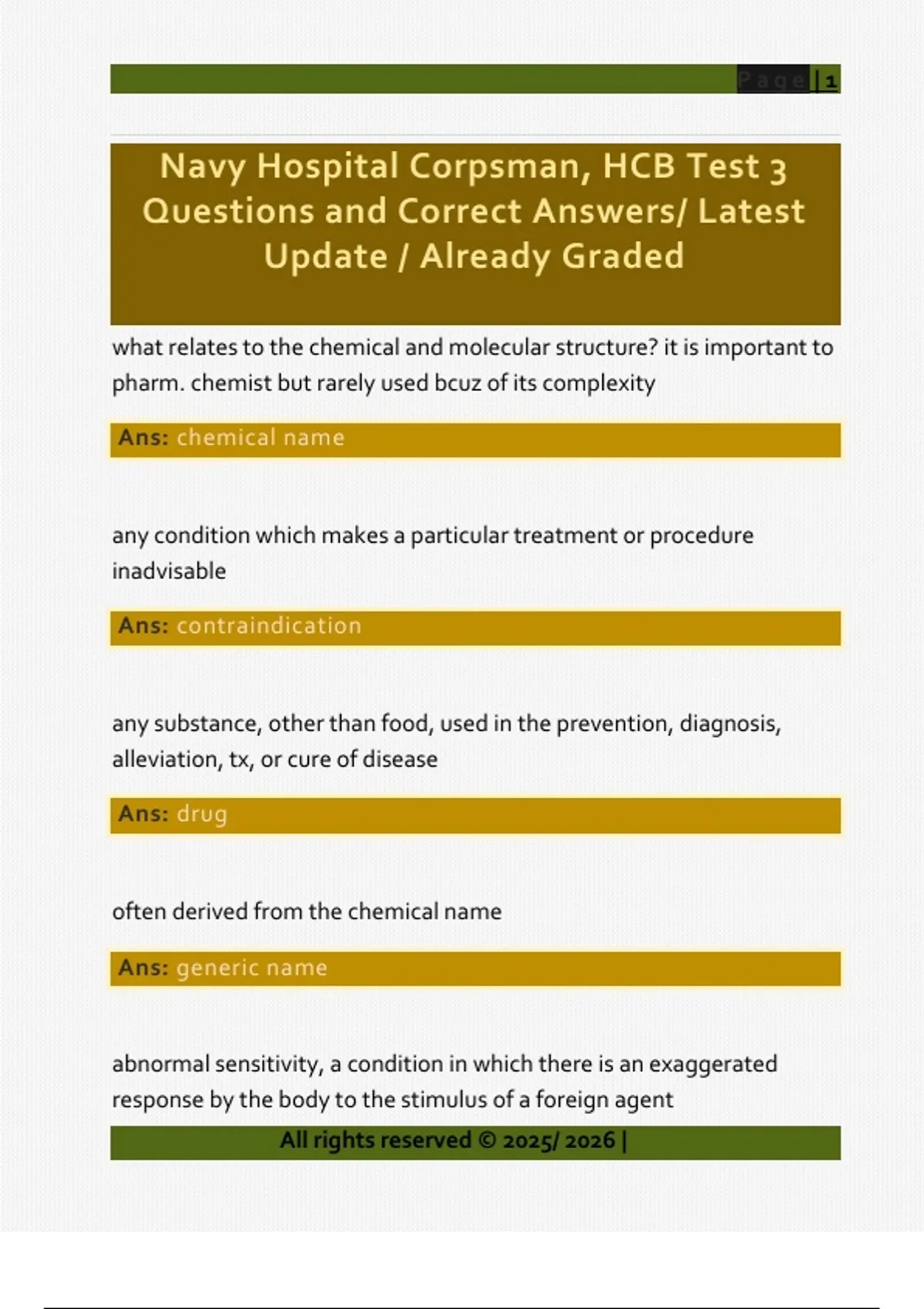 Questions and Correct Answers/ Latest