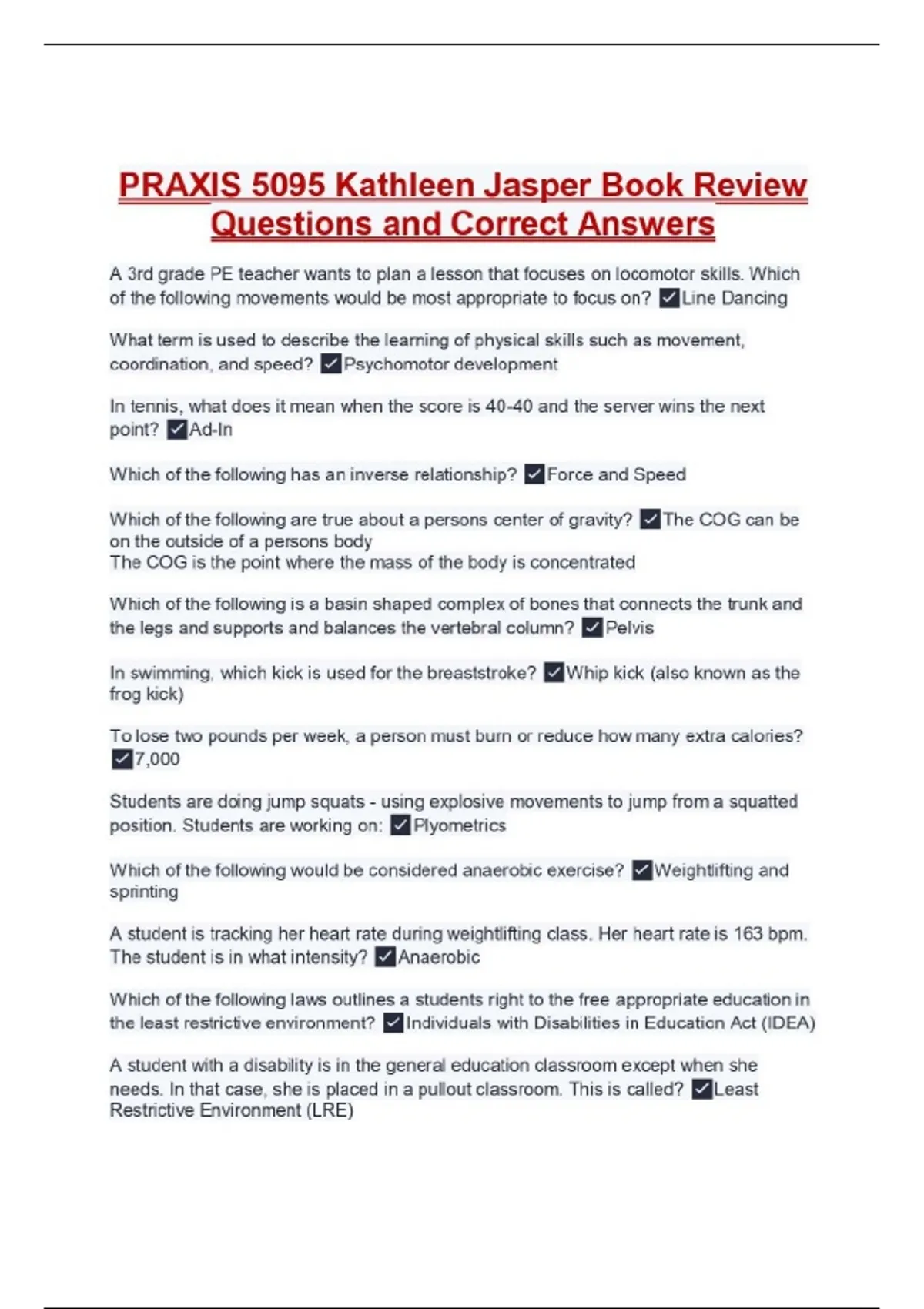 PRAXIS 5095 Kathleen Jasper Book Review Questions and Correct Answers