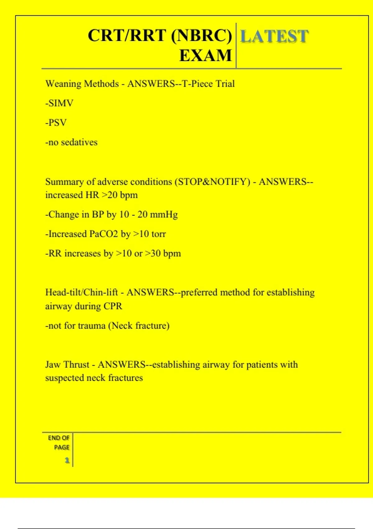 CRT/RRT (NBRC) EXAM QUESTIONS AND ANSWERS 2026
