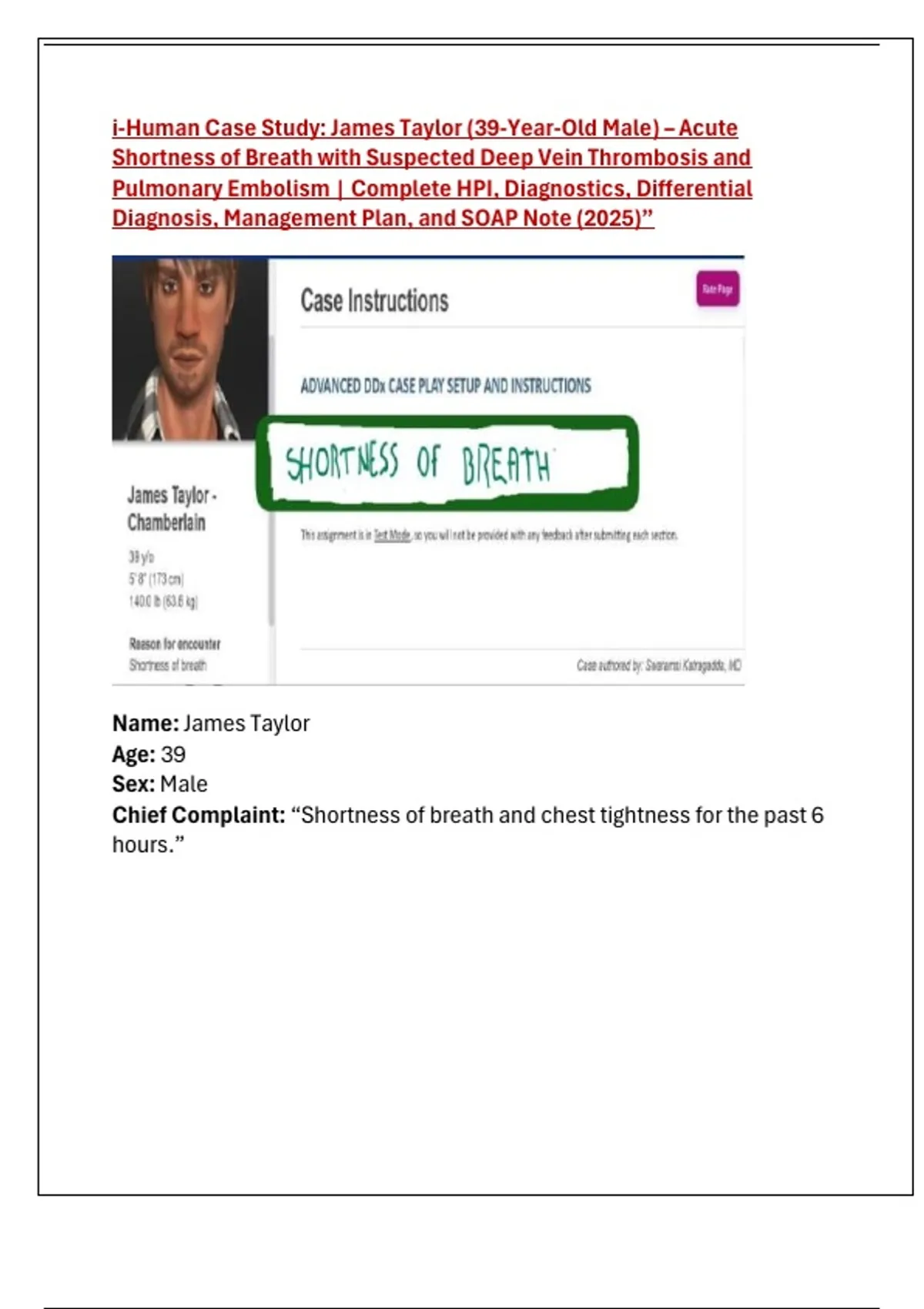 Pulmonary Embolism | Complete HPI, Diagnostics, Differential