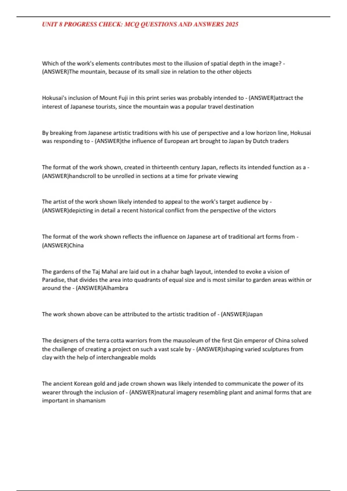 UNIT 8 PROGRESS CHECK: MCQ QUESTIONS AND ANSWERS 2025