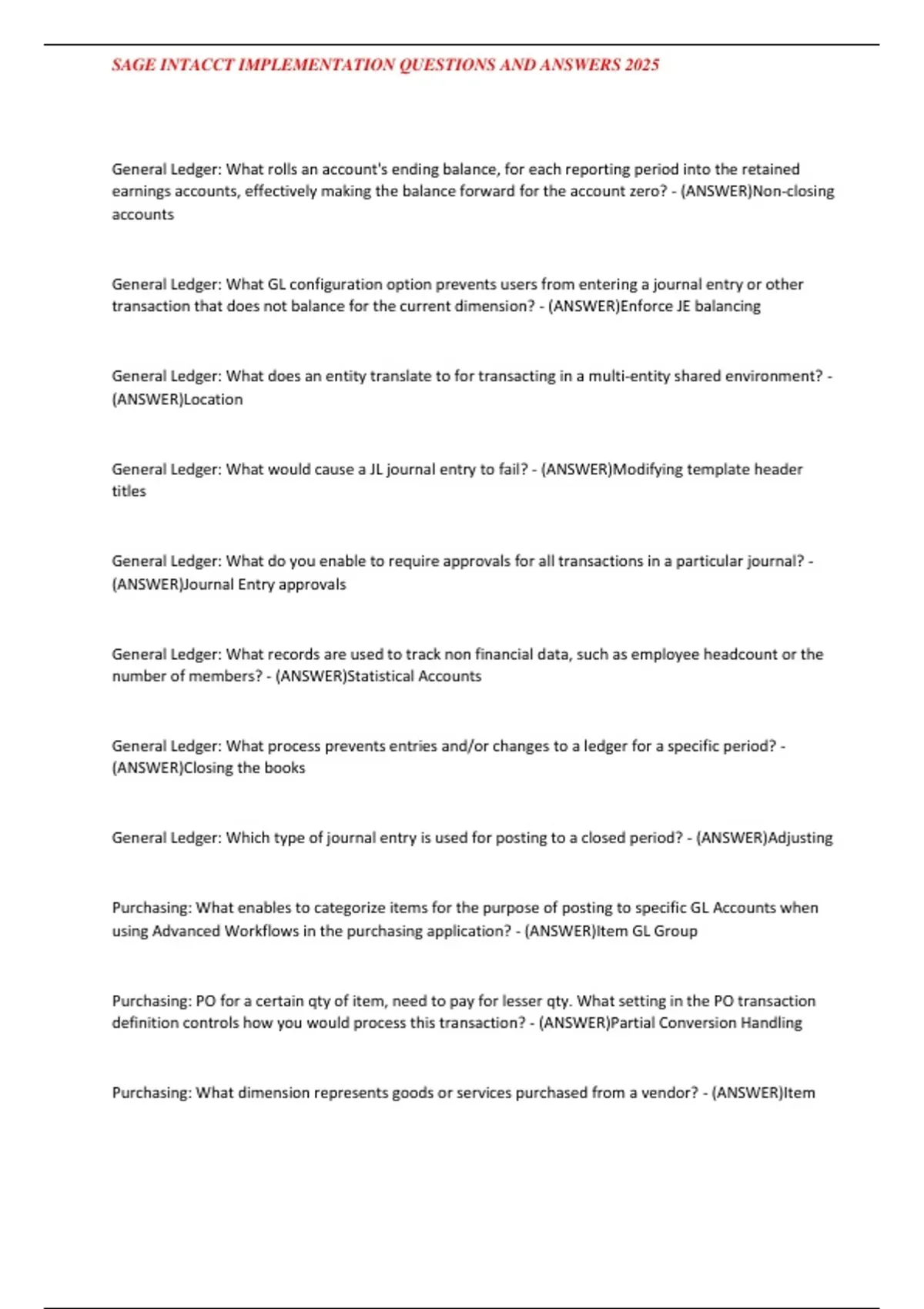 , SAGE INTACCT IMPLEMENTATION QUESTIONS AND ANSWERS 2025