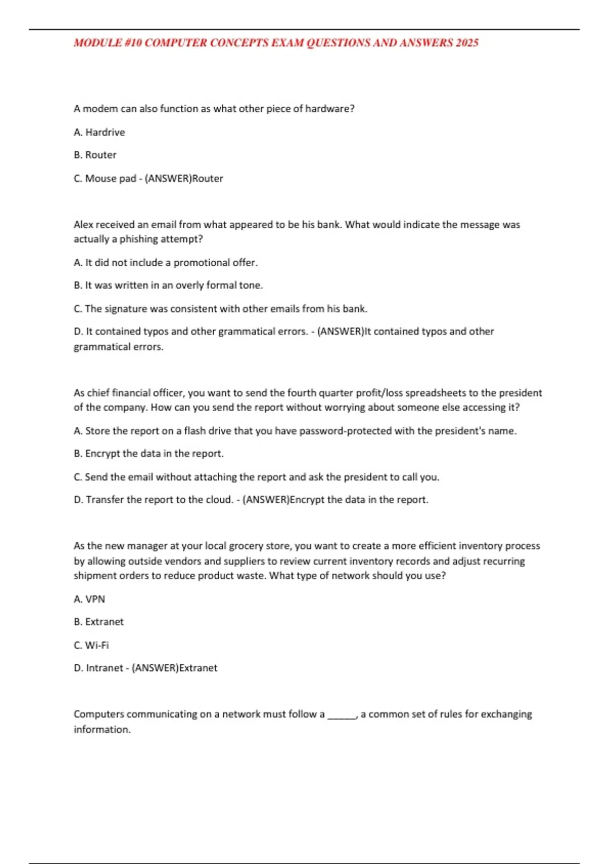 MODULE #10 COMPUTER CONCEPTS EXAM QUESTIONS AND ANSWERS 2025