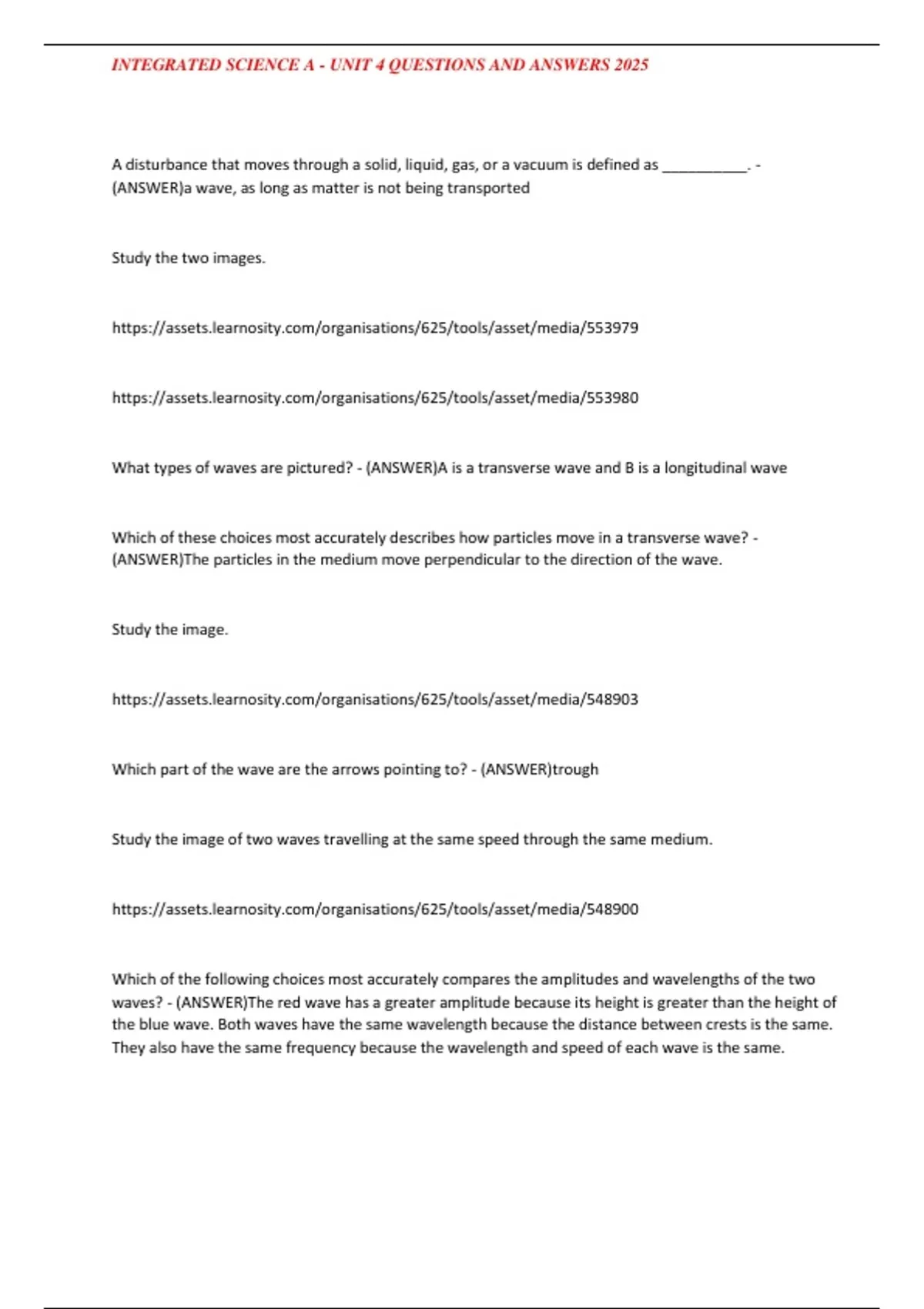 , INTEGRATED SCIENCE A - UNIT 4 QUESTIONS AND ANSWERS 2025
